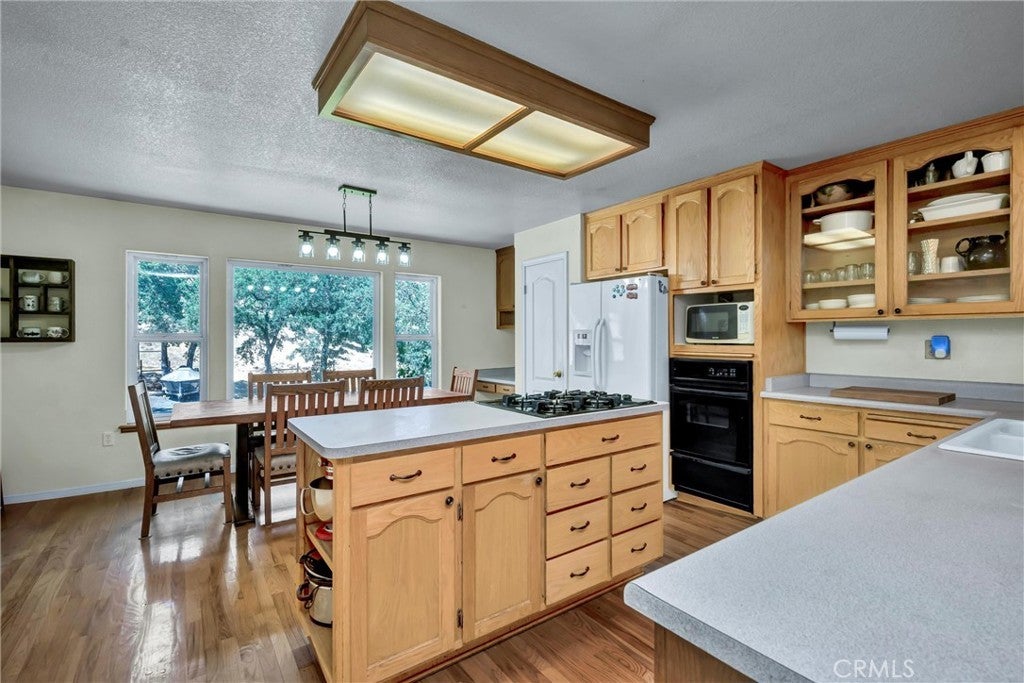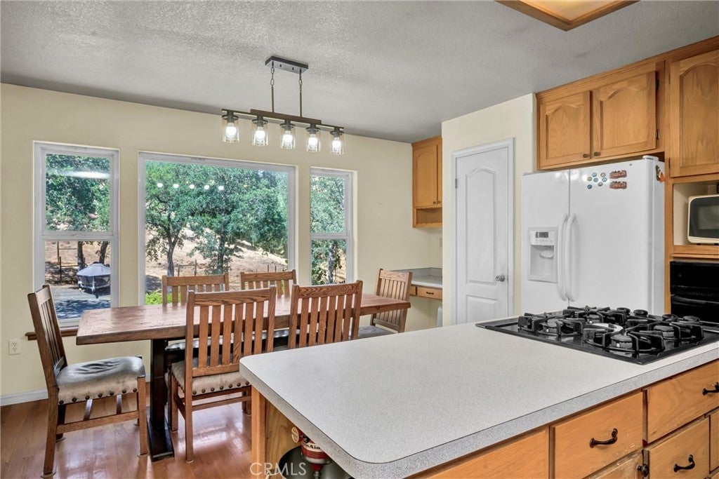 Country Living in the peaceful Hidden Valley Ranchos! This spacious 3-bedroom, 2-bathroom home features a dedicated office and a generous 20x14 bonus room—offering flexible living for families, hobbyists, or work-from-home lifestyles. Tucked away on nearly 7 serene acres, this inviting home boasts an open floor plan with an expansive family room, highlighted by a stunning barrel ceiling and cozy wood-burning stove—perfect for relaxing evenings or entertaining guests. The heart of the home is the well-appointed kitchen, complete with an island cooktop, breakfast bar, an abundance of cabinetry, full panty and even a built-in desk area for added functionality. The private primary suite is set apart from two comfortable guest rooms and a full guest bath. Step outside onto the wide, wrap-around covered porch to take in breathtaking views of oak-dotted hillsides and enjoy the sounds of the seasonal creek that winds alongside the property. The backyard offers a fenced-in oasis with a nearly new above-ground pool for cooling off on hot summer days, lush lawn front & back, and ample parking—including room for your RV, Boat, Side by Side and more! The handy pumphouse with attached workshop offer additional storage nearby. For those with a green thumb or a love of animals, there’s a fenced garden area with raised beds, a separate fenced livestock zone, and a barn/stable with level pastureland. With thoughtful fire-safe landscaping and a newer roof, this property is ready for its next chapter!