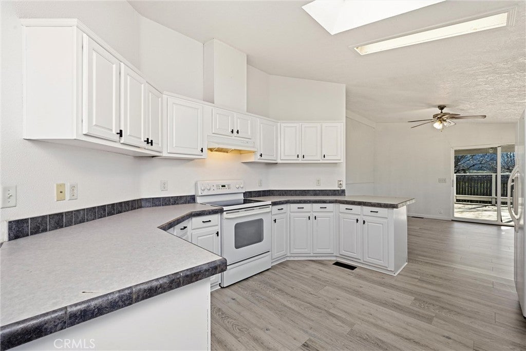Freshly updated, this turn-key 3-bedroom, 2-bathroom manufactured home on a permanent foundation is located in the Orchard Shores community, offering access to a pool and clubhouse for a low HOA fee of just $37 per month. The home features a privacy-friendly floor plan, with the primary bedroom separated from the guest bedrooms and offering direct access to the back deck. The fully fenced backyard overlooks orchards and vineyards, providing a peaceful and private outdoor setting. Large kitchen and dining area also open to back deck. Recent updates include new modern laminate flooring, new interior paint, and new exterior paint, making the home truly move-in ready. Conveniently located just minutes from Clear Lake, this property offers easy access to boating, fishing, and outdoor recreation. A great opportunity for a primary residence, vacation home, or investment property in a well-maintained community.