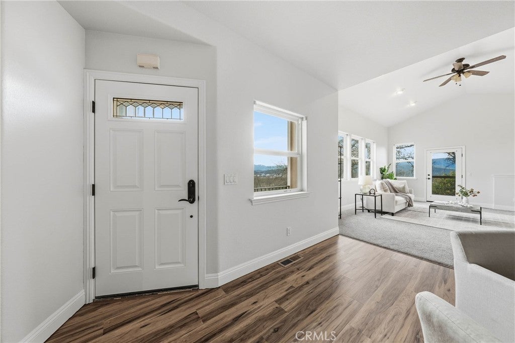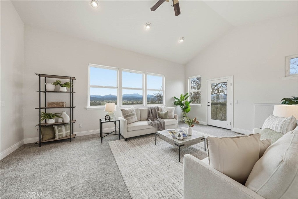 Perched high on a quiet hilltop at 19429 Moon Ridge in Hidden Valley Lake, this 4-bedroom, 2.5-bath tri-level home offers peace, privacy, and the kind of views that make you stop and take it all in. Fresh interior paint and new flooring throughout give the home a clean, modern feel and make it truly move-in ready. The heart of the home is the open living room, where a wall of windows pulls in sweeping views of Hidden Valley and the surrounding mountains. Sunsets here are something special — the kind you’ll find yourself watching night after night, whether you’re winding down after work or hosting friends on the weekend. The tri-level layout gives this home a unique sense of separation and flow. The primary suite sits on its own private upper level, creating a quiet retreat that feels tucked away from the rest of the house. It’s the perfect place to unplug at the end of the day and enjoy the calm that comes with hillside living. Located inside the gated Hidden Valley Lake community, this home offers more than just a great house — it offers a lifestyle. Enjoy gated security, a community pool, clubhouse, and a nearby golf course, all while being surrounded by nature and wide-open skies. The setting is peaceful and private, yet still convenient for commuting toward Napa or Sonoma County. If you’ve been looking for an affordable Lake County home that delivers views, privacy, and a true sense of escape — without feeling isolated — this one checks all the boxes. Moon Ridge is the kind of place that doesn’t just feel like a house, but a place to truly come home to.