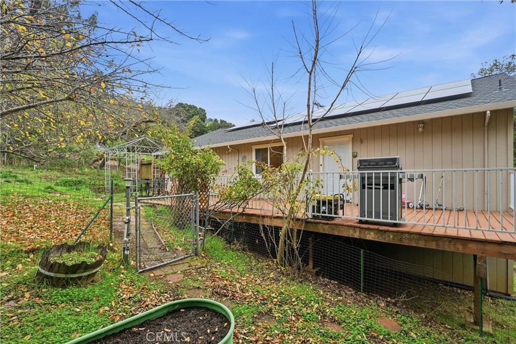 Tucked away in the desirable Riviera Heights neighborhood, this beautifully maintained home offers privacy, space, and breathtaking surroundings, backing directly to Mt. Konocti. Set on a generous lot, the property provides a peaceful retreat with room to relax, entertain, and enjoy nature. The open-concept main living area is warm and inviting, perfect for gatherings and everyday living. A spacious kitchen features abundant counter space, a full pantry, stainless steel appliances, and seamless flow into the living and dining areas, with easy access to the back deck for indoor-outdoor enjoyment. All appliances are included, making this home truly move-in ready. The primary suite offers a walk-in closet and an ensuite bathroom with dual sinks. Upstairs also includes two additional bedrooms, a full bathroom, and a generously sized laundry room. Downstairs, you’ll find a family room with a sliding door to a private side deck, plus an additional bedroom and full bathroom—ideal for multi-generational living, guests, or flexible use. Step outside to enjoy the beautifully landscaped yard, garden areas, and fruit trees from the patio or deck, all while appreciating the exceptional privacy this property provides. Additional highlights include a brand-new 50-year roof, a 2024 installed leased solar system with over 30 panels, and two Tesla Powerwall 3 backup batteries for energy efficiency and peace of mind. The Riviera Heights HOA offers access to a marina, clubhouse, and pool for a low annual fee. The seller also owns the adjacent lot, which will be available for purchase exclusively to the buyer, presenting a rare opportunity for added space, future expansion, or enhanced privacy. This is a unique property combining comfort, efficiency, and a tranquil setting—perfect for those seeking both privacy and community amenities.