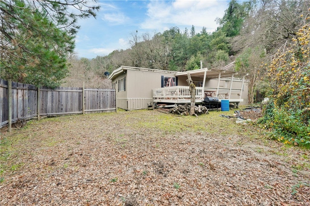 Opportunity knocks! This 1,440 sq. ft. home on 1.5 acres offers huge potential in a serene, tranquil setting. Cross your own bridge over the creek to this spacious residence featuring a living room with wood stove, dining room, and large kitchen—perfect for family gatherings or entertaining. The property is fenced with a gate, ideal for pets or planting a garden. Step out onto the large deck to relax, entertain, or watch wildlife in the peaceful surroundings. The home includes 2 bedrooms and 2 bathrooms, and there is a large garage in a separate building, offering extra storage or workspace. While the property needs some repairs, its fantastic floorplan and private setting make it a strong value-add opportunity. Conveniently located just minutes from Riviera with its shops and historic downtown Kelseyville, featuring restaurants, tasting rooms, schools, and more, this property combines country tranquility with town access. Sold AS-IS.