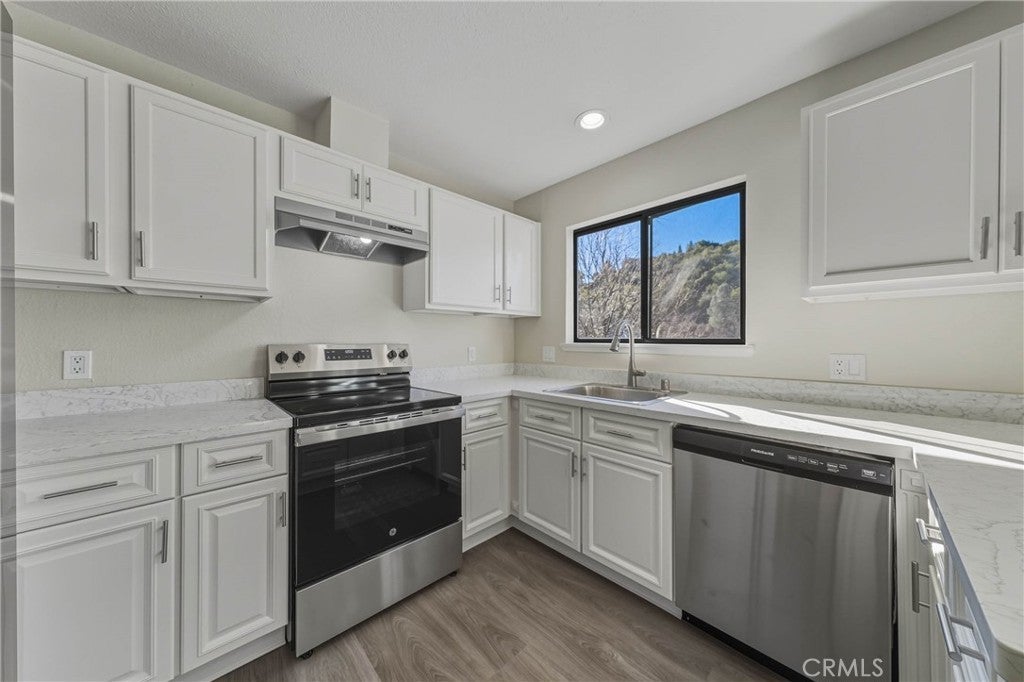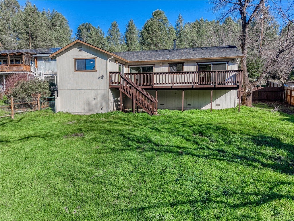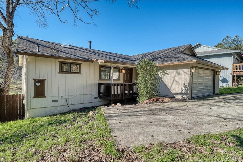 Welcome to this beautiful TURN-KEY home built in 1983, located in Kelseyville Riviera Ca. This meticulously maintained single family residence offers 3 spacious bedrooms, 2 bathrooms, 1300 sq ft of living space of perfect blend of comfort, style, and privacy. Additional modernizations include dual-pane windows, recessed lighting, skylights, durable vinyl flooring throughout, a fully updated kitchen with new cabinets, countertops, and stainless-steel appliances. Living room area provides built in shelves, ceiling fan, linen closet, and garage access. Central heating and Air. Primary bedroom offers a walk-in closet, ceiling fan, and slider access to the back deck. Primary bathroom has been stylishly remodeled with new tile, walk-in shower and large vanity with soft closed drawers. The home also features fresh interior and exterior paint, as well as new interior and exterior doors. Additional highlights include a 2-car attached garage with laundry hook-ups and a generously sized fenced backyard. Storage area beneath the large back yard deck. This home offers the perfect balance of modern living and convenience. Move-in ready and beautifully maintained, providing a hassle-free buying experience. Convenient Location near shops, schools, dining, and easy freeway access. A low HOA fee of 160.00 a year.
