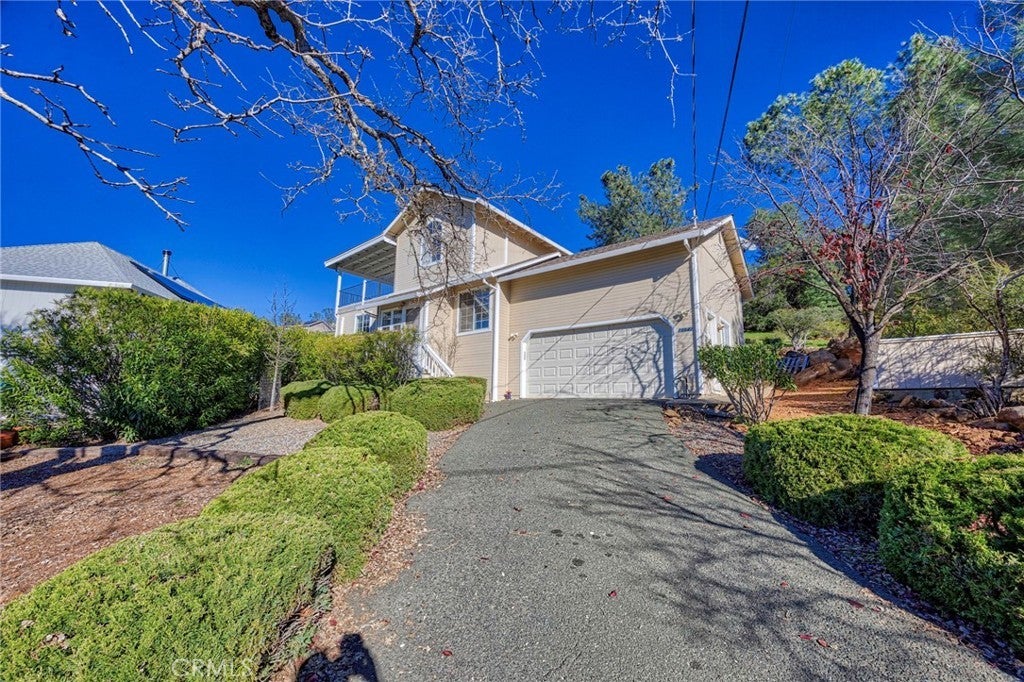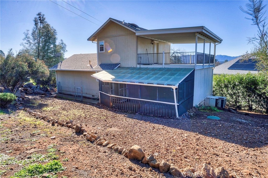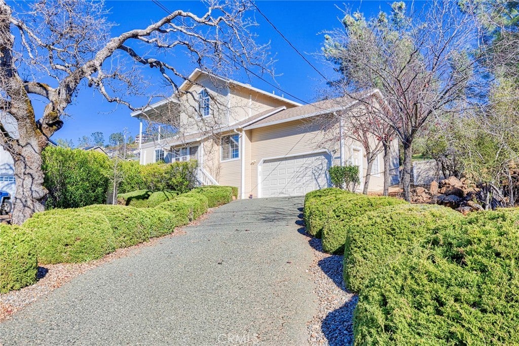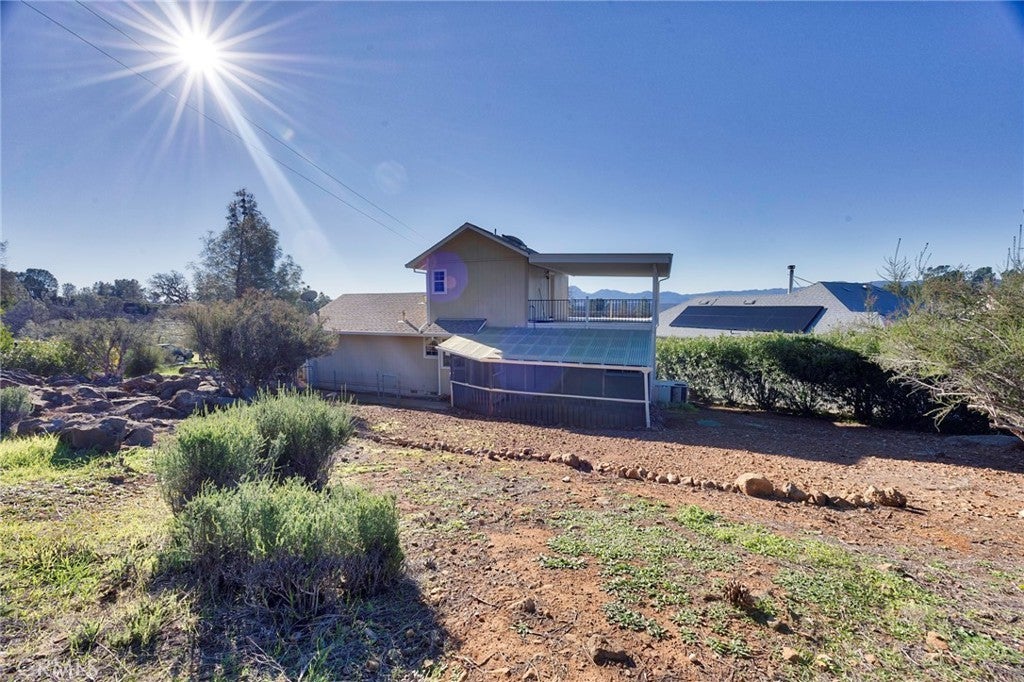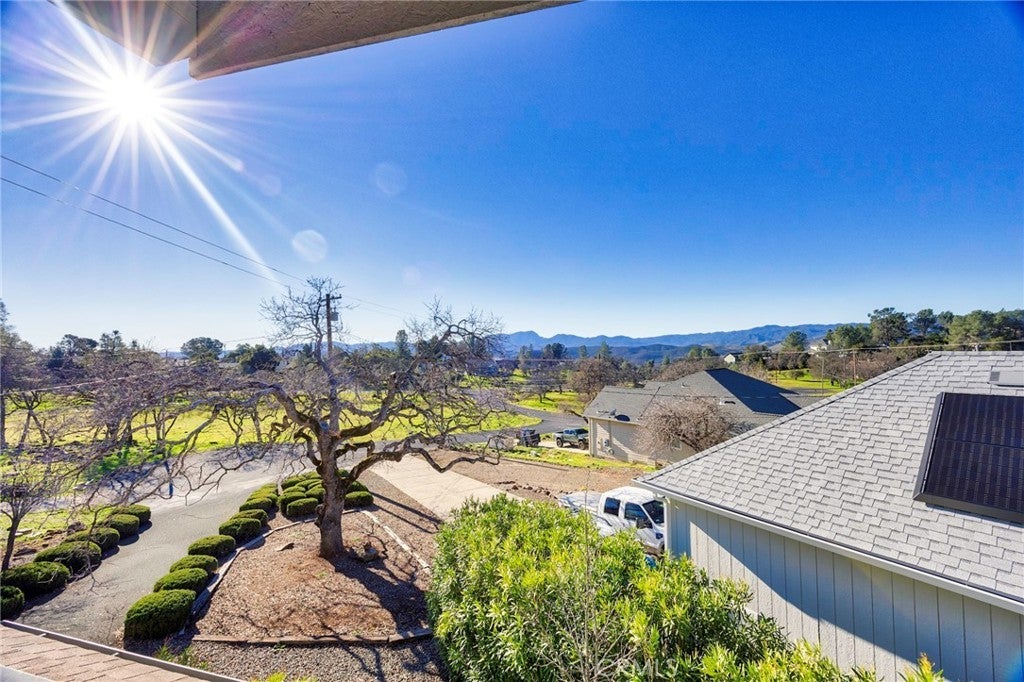 Tucked away on a quiet Cul-De-Sac you will find this charming country cottage featuring 2 bedrooms, 2 baths and a den. This inviting home features a cozy living room, mini-split systems throughout for comfort and efficiency, and a fully equipped kitchen with a window overlooking the tranquil green backyard. Step outside to a covered and enclosed private patio, perfect for relaxing or weekend barbecues. The main level offers a guest bedroom, den, and a remodeled guest bath with glass shower doors and dual shower heads. Upstairs, the primary bedroom is a sanctuary, includes a large closet with adjoining bath featuring a vanity and shower-in-tub. Enter to a private covered patio/deck offering fabulous views and the ultimate space for relaxation. Enjoy resort-style living with access to Hidden Valley Lake amenities including a 102-acre lake, marina, 18-hole championship golf course, pool, stables, tennis, pickleball, parks, and more—this affordable home is ready to enjoy.