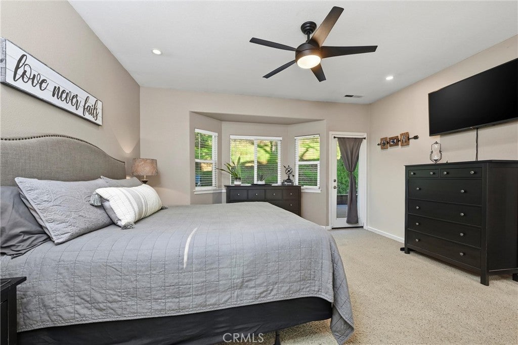 Tucked away on a quiet court in the gated community of Hidden Valley Lake near serene Putah Creek, this spacious single-level 4-bedroom, 3-bath home offers comfort, privacy, and thoughtful upgrades throughout. A charming four-tier fountain welcomes you at the front, setting a peaceful tone as you step inside. The heart of the home is the beautifully remodeled kitchen (2020), featuring new cabinetry, all newer appliances, a large quartz island with a pull-out garbage drawer, and three oversized cabinets on the opposite side for exceptional storage. Drawer-within-a-drawer cabinetry maximizes efficiency, while a walk-in pantry provides even more space. The kitchen opens to the family room, where a cozy wood-burning fireplace with propane start creates a warm gathering space. The primary suite is a relaxing retreat with direct access to the back porch, a generous walk-in closet, and a well-appointed ensuite bathroom offering dual sinks, Corian counters, a jetted soaking tub, and a separate shower. The second bedroom features a private entrance to the front porch, a large closet with a modular, customizable shelving system, and access to a Jack-and-Jill bathroom shared with the third bedroom, which includes a standard-sized closet and its own convenient bathroom access. The fourth bedroom also opens directly to the back porch and includes a closet, making it ideal for guests, a home office, or flexible living needs. Additional highlights include a beautifully remodeled laundry room (2023) with all-new cabinetry, sink, counter space, and washer and dryer, along with a good-sized linen closet and a hall closet equipped with a built-in modular storage system. An on-demand hot water heater adds efficiency and comfort. Beneath the home, a large walk-in basement area with garage access offers built-in oversized shelving—perfect for tools, equipment, and seasonal storage. For added privacy and space, the vacant lot next door can be included at no extra cost, making this already special property an exceptional opportunity to enjoy peaceful living in Hidden Valley Lake.
