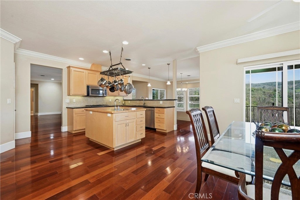 Welcome to this stunning custom-built home offering elegant finishes, expansive living spaces, and exceptional craftsmanship throughout. Built in 2006, this beautifully maintained 4-bedroom, 3.5-bathroom residence spans 3,163 square feet and sits on a generous 0.65-acre lot, providing both comfort and privacy. Step through the glass front door and into a light-filled interior featuring Brazilian cherry hardwood floors, soaring 10-foot ceilings, and detailed crown molding. The main living area features a cozy fireplace, recessed lighting, and direct access to the covered back deck, creating a warm, inviting space for everyday living and entertaining. The gourmet kitchen is a chef’s dream, complete with stainless steel appliances, granite countertops, abundant cabinetry, and a large pantry. The open layout flows seamlessly into the dining and living areas, ideal for hosting gatherings. The primary suite is located on the main level and serves as a true retreat, featuring a spa-like bathroom with dual vanities, a soaking tub, and a separate shower. Downstairs, you’ll find three additional bedrooms, two full bathrooms, and a spacious second living room with a gas fireplace and wet bar, perfect for guests or multi-generational living. This level also opens to a second covered deck for additional outdoor enjoyment. Additional highlights include a Generac backup system, a 3-car garage with excellent storage, and the adjacent lot at 19450 Donkey Hill (0.64 acres) included with the sale offering added privacy, expansion potential, or space for gardening and recreation. Located within the Hidden Valley Lake gated community, homeowners enjoy access to premium amenities including a private lake, 18-hole golf course, swimming pool, tennis courts, parks, and 24-hour security. This is a rare opportunity to own a high-quality custom home with bonus land in one of Lake County’s most desirable communities.