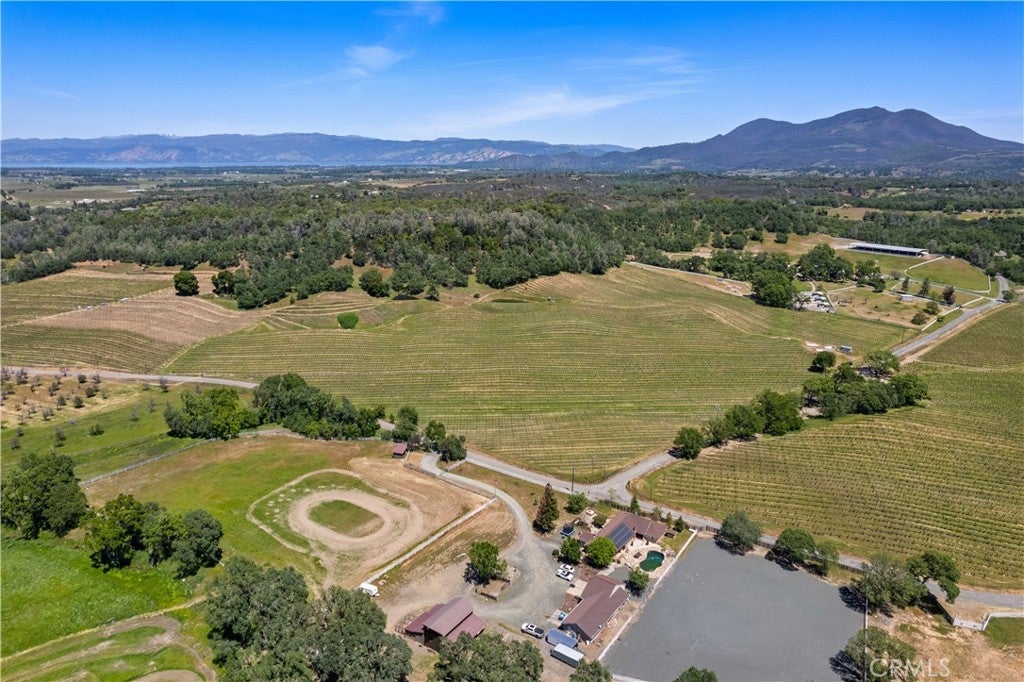 Nestled within the scenic Kelsey Bench AVA this 86 acre estate boasts 32.6 acres planted to Cabernet, Montepulciano and Sangiovese grapes, promising a bounty of premium harvests. The lush vineyard features a pond and cleared acreage for additional vine planting. At the heart of the estate stands the main residence. Step inside to discover an inviting open layout adorned with panoramic vistas of the surrounding vineyard, inviting in the tranquility of the natural landscape. The residence offers 4 bedrooms and 3 baths, ensuring ample space for both relaxation and entertainment. A spacious living room, adorned with a rustic fireplace, serves as the focal point for gatherings, while coffered ceilings, recessed lighting, and skylights imbue the space with an ambiance of warmth. Outside, a beautifully landscaped backyard beckons, offering a serene retreat amidst verdant greenery. A detached two-bay garage, stamped concrete circular driveway and additional cover for large equipment, such as a tractor, provides convenient storage for vehicles and equipment. Meticulously managed for years, the vineyard boasts well water and reservoir rights for irrigation, ensuring optimal conditions for grape cultivation and harvest. Whether indulging in the art of winemaking or simply savoring the tranquility of country living, this estate offers a rare opportunity to experience the quintessential charm of wine country living at its finest.