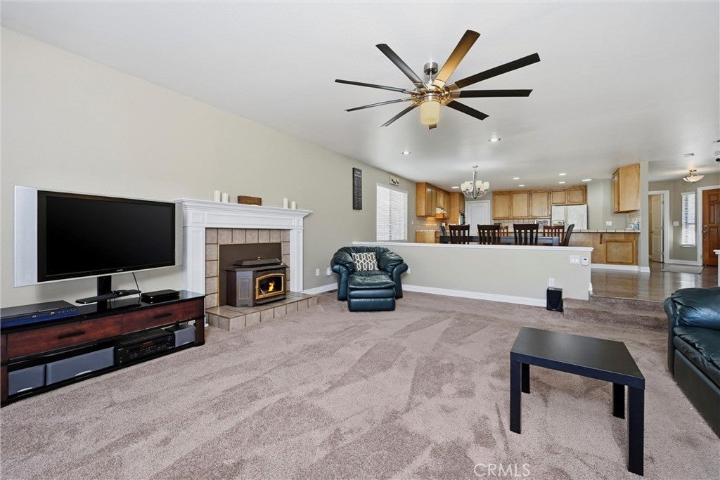 Breakfast Bar, Ceiling Fan(s), Eat-in Kitchen, Living Room Deck Attached, Open Floorplan, Pantry, Tile Counters, Bedroom on Main Level, Main Level Primary, Walk-In Pantry, Walk-In Closet(s)