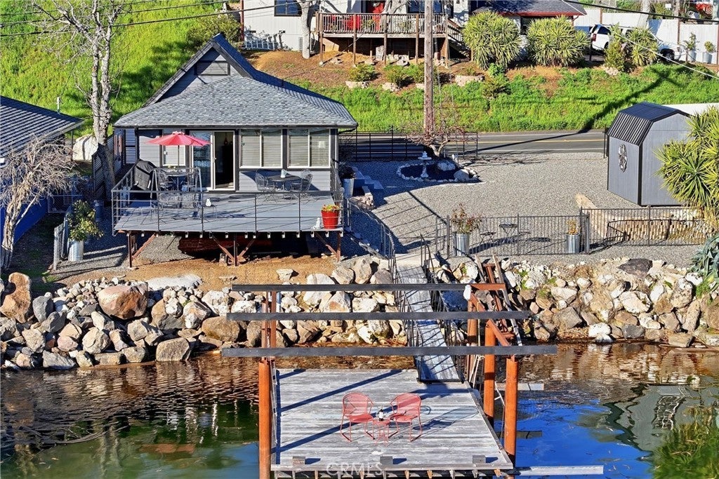 TURN-KEY lakefront getaway awaits with stunning panoramic lake views nestled on the shores of Clearlake. Enjoy fishing off your private, steel framed dock and pier or soak in the morning sunshine on the spacious Trex deck out front. Perfect for an Airbnb, this home is fully electric and the epitome of low-maintenance living! Recently remodeled into a 1 bed/2 bath home, creating a more functional design and optimizing the space and views. The kitchen features granite countertops with ample space and storage for your cooking needs matched with picturesque views as you entertain. The property is fully fenced with security gate access with plenty of room for parking for your vehicles, boat, and/or RV. Located less than a 10 min drive from the nearest boat launch and amenities blending a waterfront retreat with everyday convenience; you can begin your escape to peaceful living at 13379 Lakeshore Drive.