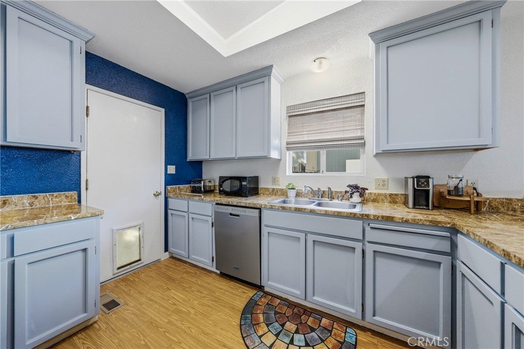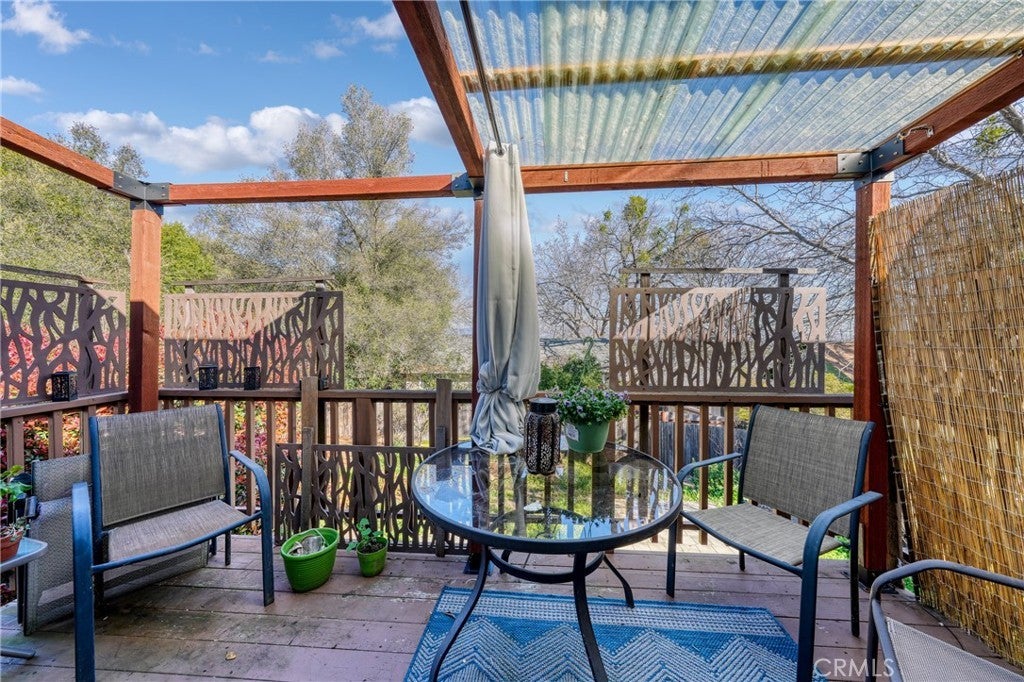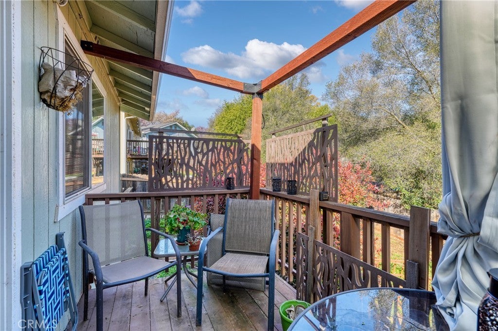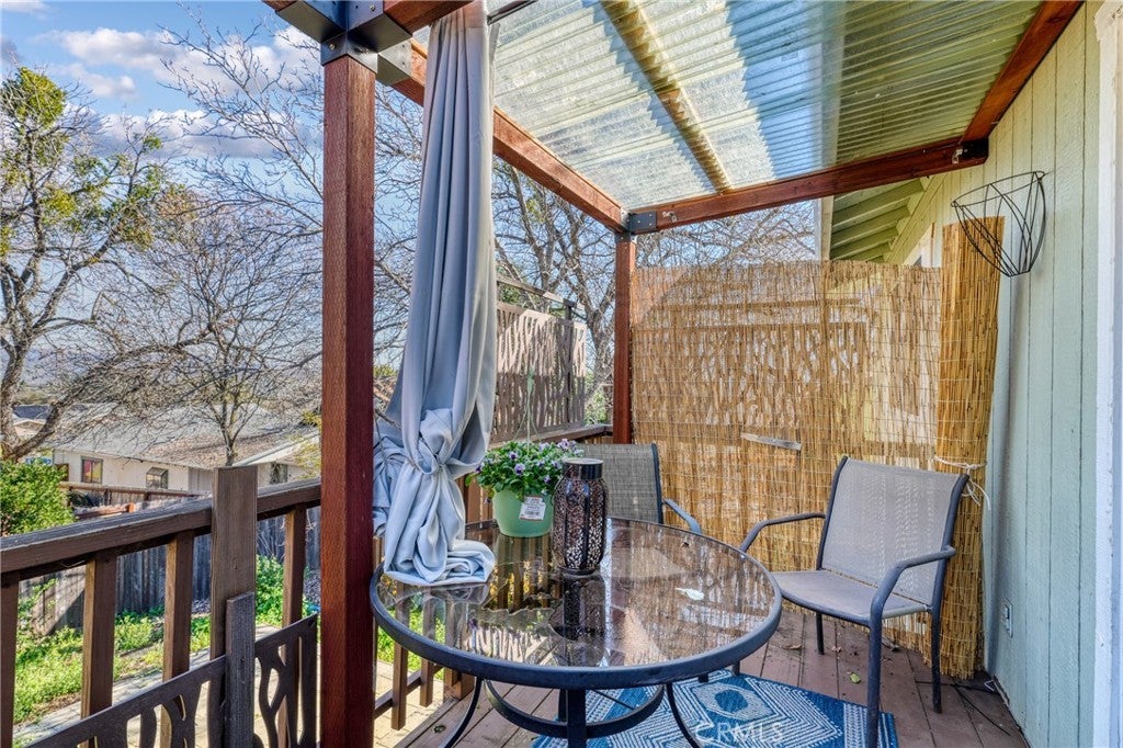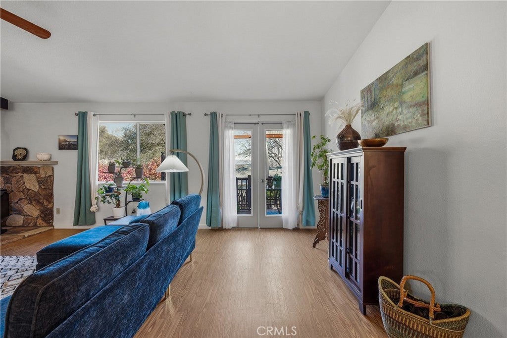 This single-level home is situated in the beautiful Clearlake Riviera community of Kelseyville, CA. A wood-look tile entry leads into an open floor plan featuring vaulted ceilings and vinyl floors, creating an inviting atmosphere throughout the home. The great room is further enhanced by a cozy rock hearth with a wood stove for added comfort. The large kitchen offers ample counter space and a breakfast bar that opens directly to the living area, with an additional dining space conveniently located nearby. The primary bedroom features a private view of the backyard and an en suite bathroom with a tub-shower combo. A second bedroom overlooks the front yard, while the hall bathroom is finished with wood-look tile floors and a tub-shower combo. Located off the great room, French doors open to an attached upper deck, providing a perfect spot to overlook the fenced backyard and its diverse selection of plants, trees, and shrubs. The front yard is designed with low-maintenance landscaping, including blooming flowers and greenery. A flat concrete driveway leads to the attached two-car garage, which includes a side door for easy access to the side patio and the shaded fenced backyard. Located just above CA. Largest natural Lake Clear Lake. Enjoy year-round water sports and amazing views.