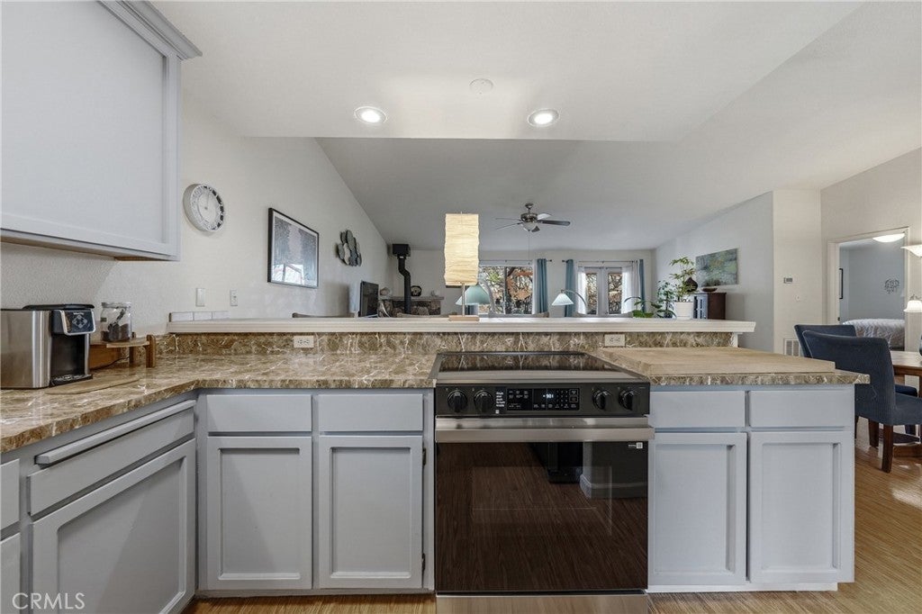 Breakfast Bar, Ceiling Fan(s), High Ceilings, Laminate Counters, Living Room Deck Attached, Open Floorplan, Recessed Lighting, See Remarks