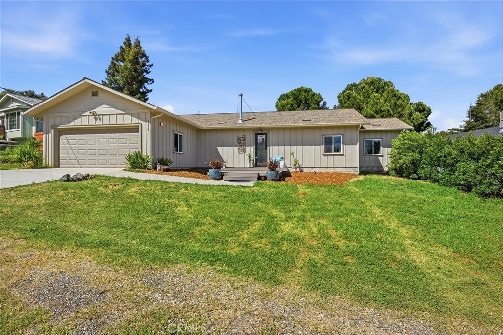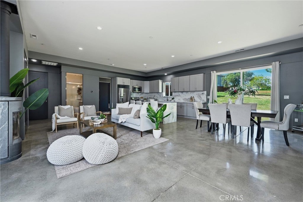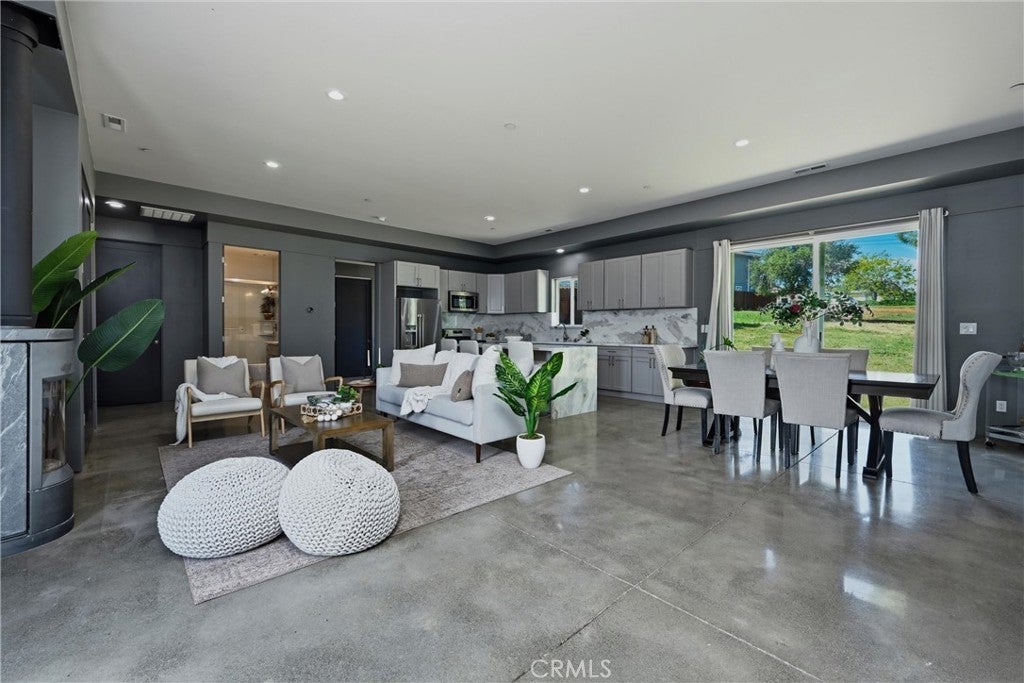 Beautiful custom build in Kelseyville Riviera! Completed in 2021, this turn-key 2bed/2bath (PLUS large den/office or easy 3rd bedroom?) 1550sqft., modern style one story home has gorgeous finishes and is still like brand new inside & out! Smooth concrete flooring, high ceilings, 8ft tall doors, & a unique stylish wood stove in living room. Absolutely stunning open kitchen featuring a one of a kind 10ft long waterfall quartz island, quartz counters, custom cabinets, & high end stainless appliances. Primary bedroom includes an awesome private bathroom with glass walk in custom tiled shower and double sinks. Huge walk in closet with built in closet organization, and hook ups for hot tub right out the slider door. Home even has quartz window sills through out! Attached 2 car deep garage, propane on demand hot water, and central HVAC. Low maintenance yard landscaping. Built with energy efficiency in mind and tastefully designed from top to bottom. Great find for any buyer looking for a newer, modern turn-key home you can just move right into!