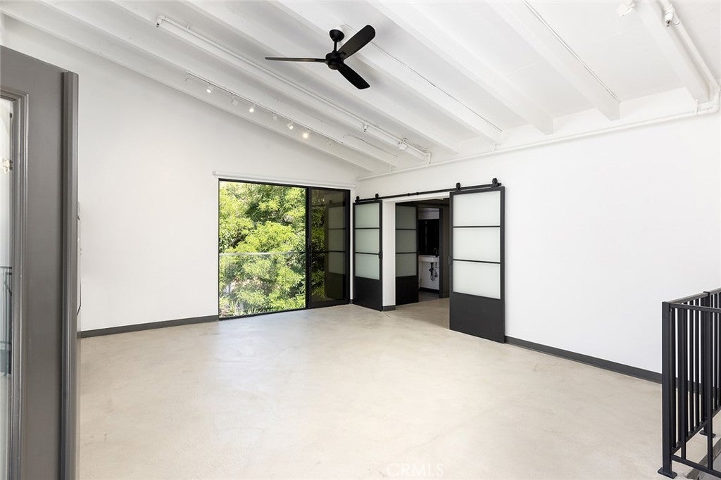 Beamed Ceilings, Ceiling Fan(s), Cathedral Ceiling(s), Open Floorplan, Stone Counters, Recessed Lighting, Track Lighting, Unfurnished, Wired for Data