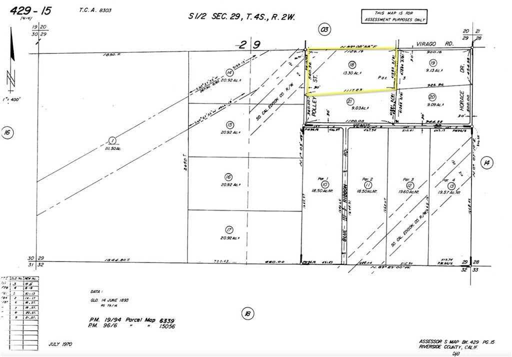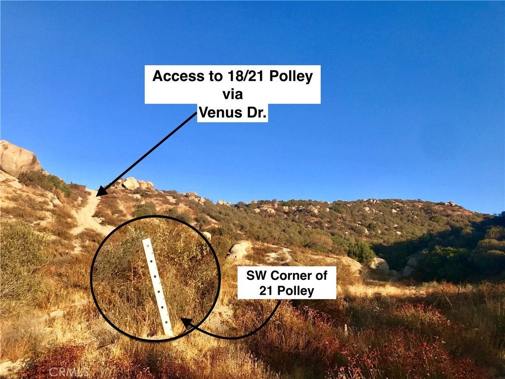 Exceptional 13.30-Acre View Property in Nuevo! Discover this expansive, prime piece of vacant land offering breathtaking top-of-the-world views. Ideal for a custom ranch or private estate, this property provides ample space for a mobile home, custom residence, outbuildings, and all your family's needs—whether it's for toys, animals, pools, gardens, or orchards. Enjoy the tranquility of an extremely private location, while being conveniently situated between Riverside, San Bernardino, Los Angeles, and San Diego Counties. The property is close to shopping, schools, services, and entertainment, and boasts stunning vistas of the surrounding hills and picturesque lakes. This parcel is available separately or in conjunction with 21 Polley for a total of 22.33 acres. Don't miss this unique opportunity.*15% down financing source available*
