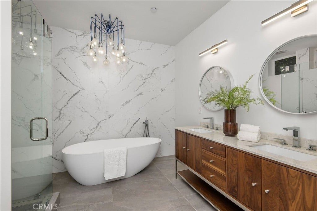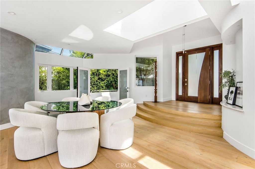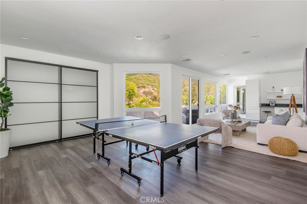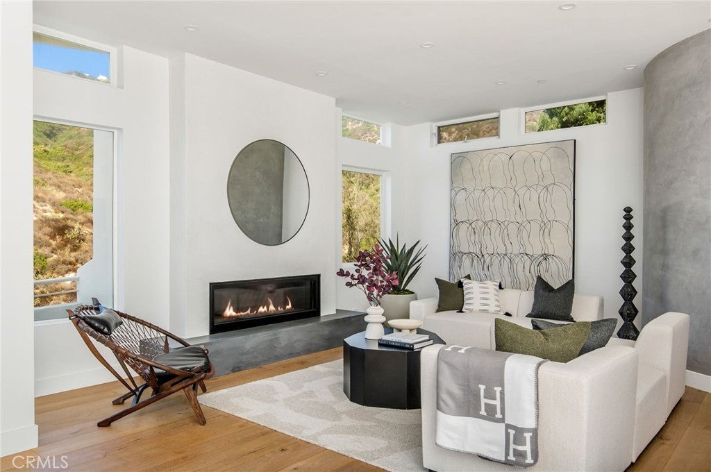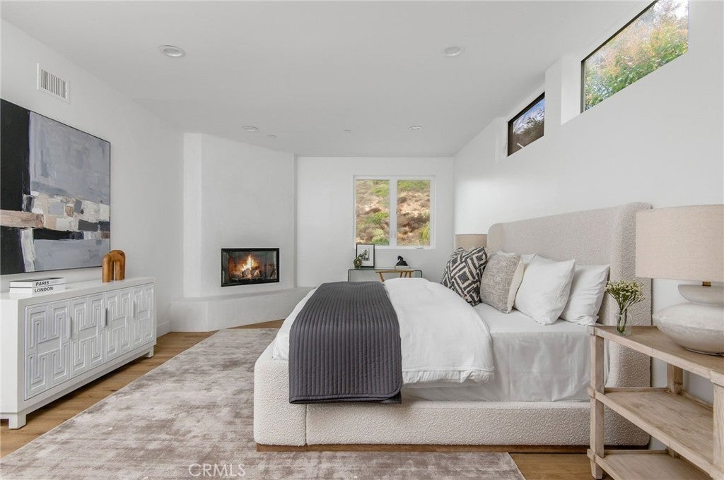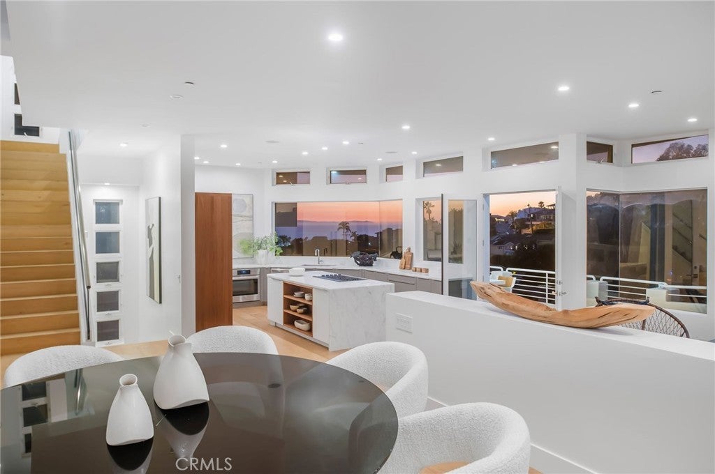 A stunning example of contemporary Laguna Beach architecture with panoramic views of the Pacific Ocean and the city below. This highly updated home spans approximately 4,256 square feet across four levels and features five bedrooms in addition to multiple outdoor spaces. The living space, dining area, and kitchen flow seamlessly to create a large, voluminous great room just off the main entryway. Multiple windows perfectly frame the ocean views and let in abundant light. The recently renovated kitchen features two-tone cabinetry, a suite of Bosch appliances, and a waterfall-edge marble island with a cooktop. A large patio off the living area allows for alfresco dining, while the fireplace with a modern concrete mantle anchors this airy space. The primary suite spans the entire top floor, with walls of Pacific-facing windows, a sizable balcony, and a massive walk-in closet. The remodeled owners’ bathroom is grand and features a standalone tub, a seamless dual shower, and floating vanities. Another of the home’s fireplaces rounds off this floor. All secondary bedrooms are located on lower levels, granting their occupants ultimate privacy. A junior suite with an adjacent five-piece bath and walk-in closet shares the floor with another of the home’s decks and two additional bedrooms connected by a jack-and-jill bathroom. The lowest level houses a large flex space with its own entrance, which lives like an ADU - with a kitchenette and a full bath. Dream location, with Laguna’s shopping, galleries, and famed beaches just minutes away.