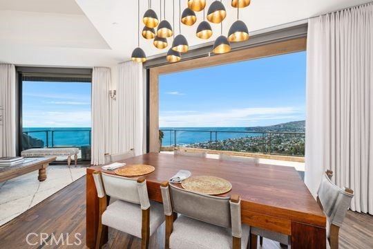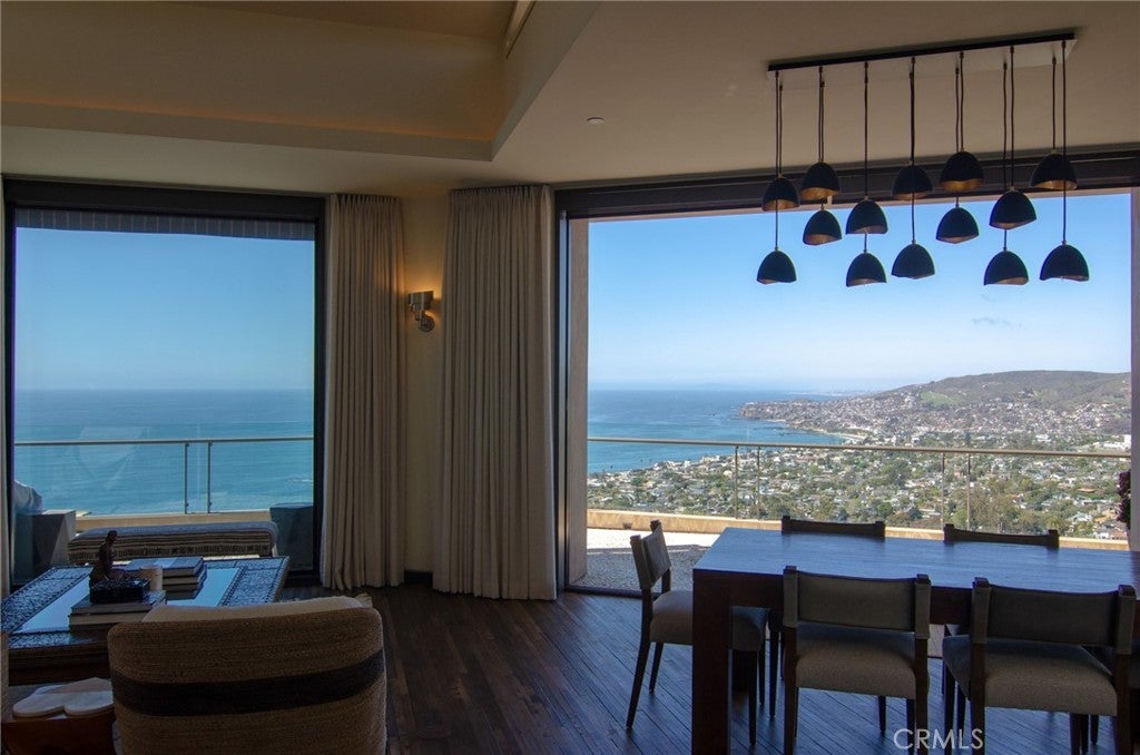 Dramatic Ocean View Architectural Masterpiece in Laguna Beach Perched in one of Laguna Beach’s most breathtaking settings, this four-bedroom, three-and-a-half-bath architecturally rich residence offers endless Pacific Ocean views, from the shimmering waters by day to the dazzling coastal lights by night. Designed to maximize the panoramic scenery, retractable glass doors seamlessly merge indoor and outdoor living, inviting in the ocean breeze and framing the stunning vistas. Spanning 4,951 square feet on a 6,500 square foot lot, this custom contemporary masterpiece is a sanctuary of style and sophistication. The open living spaces flow effortlessly to a spacious ocean-view terrace and a rare Laguna Hillside Garden, where outdoor seating, lush lawns, mature olive trees, and a vibrant flower garden create a serene retreat. The chef-inspired kitchen is designed for function and beauty, offering top-tier appliances and stunning ocean views. A separate dining area provides a picturesque setting with views of the coastline and garden. The living space is designed for grand entertaining, enhanced by soaring ceilings, architectural art lighting, and generous gallery-like wall space. A sculptural interior staircase and 100-year-old patinated maple flooring add to the home’s distinctive character. The temperature-controlled wine room, capable of storing up to 700 bottles, provides ample space for wine enthusiasts. The luxurious master suite features a private ocean-view balcony, spa-like bath, and his-and-her dressing areas. Two additional en suite guest rooms, both with ocean views, provide comfort and privacy. A convertible media room offers flexibility for additional living space. Additional highlights include: Elevator access to all levels Oversized garage with a private gym Whole-house audio and high-end finishes throughout Multiple ocean-view decks, including a private master suite terrace with sweeping white-water, coastline, Catalina Island, and city-light views, this exceptional residence is a true coastal retreat, offering the best of Laguna Beach living.