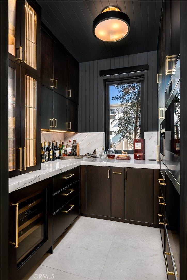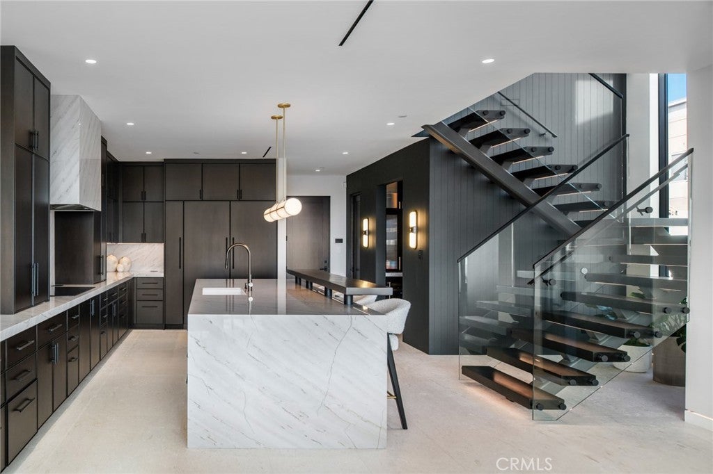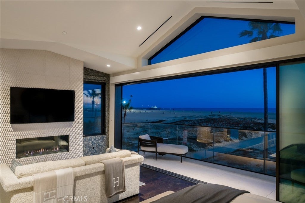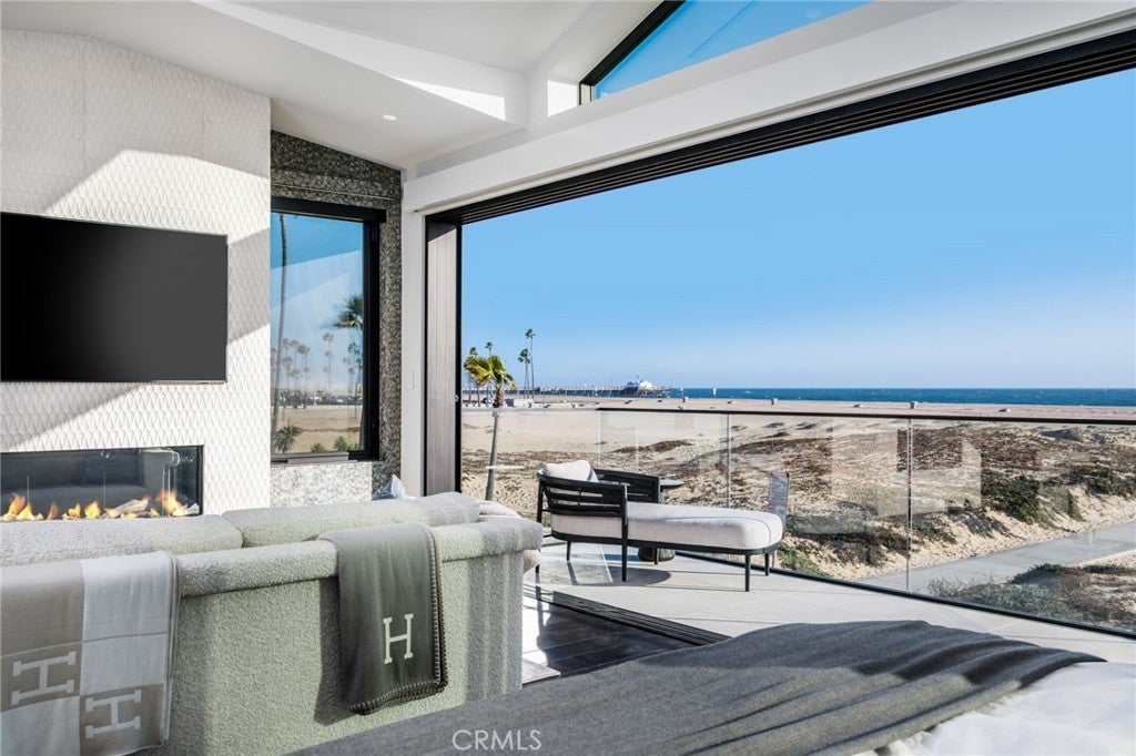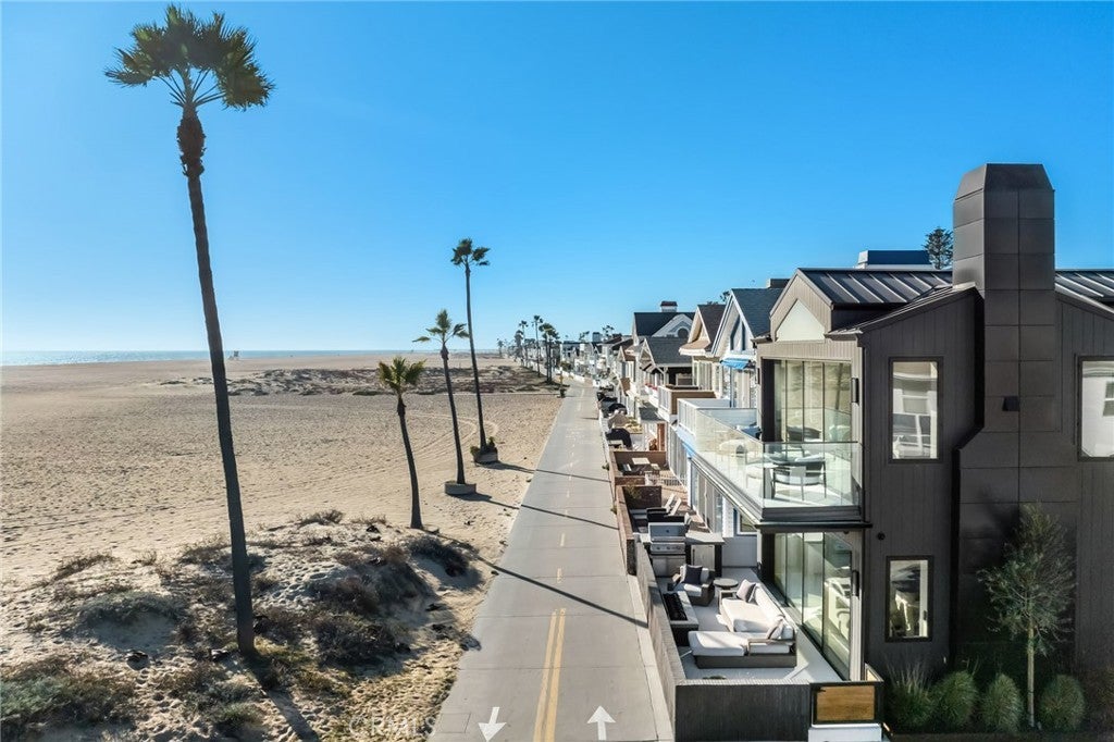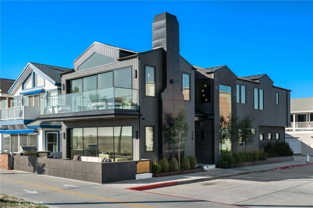 218 Oceanfront: an exceptional and singularly rare residence. Sited on a scarce corner lot, this beachfront home offers the ultimate refined on-the-sand lifestyle. A rigorous to-the-studs reimagining was recently completed, resulting in coveted contemporary lines and breathtaking ocean vistas from both levels. Expert layering of rich, contrasting elements including wood, stone, and glass throughout creates an ambiance of timeless luxury. The main floor invites the exteriors in through a wall of automated glass doors spanning the length of the front, seamlessly connecting an oceanfront patio with the great room. This ample space with a fireplace encompasses a living area, a dining section, and the home’s remarkable kitchen. Anchored by a grand waterfront edge quartzite-topped island, this culinary haven features a combination of Wolf, Cove, and SubZero appliances, bespoke cabinetry, and a large butler’s pantry, adding further functionality to this elegant space. A sleek, floating wood-and-glass staircase connects the two levels, creating a visual statement. The primary suite is all about coastal opulence, with dramatic vaulted ceilings, an ocean-view deck, and a fireplace. With floating double vanities, a freestanding tub, a large shower, and an impressive closet, the exquisite bathroom creates an atmosphere of indulgence. Three secondary bedrooms and a functional loft complete the upper floor. While offering refinement, this residence lacks no conveniences: from an oversized garage with a lift for a third vehicle to a whole-house Savant smart system that controls the home’s automation. Featuring ease of access to the area’s highlights, 218 E Oceanfront offers a premium location on the Balboa Peninsula.