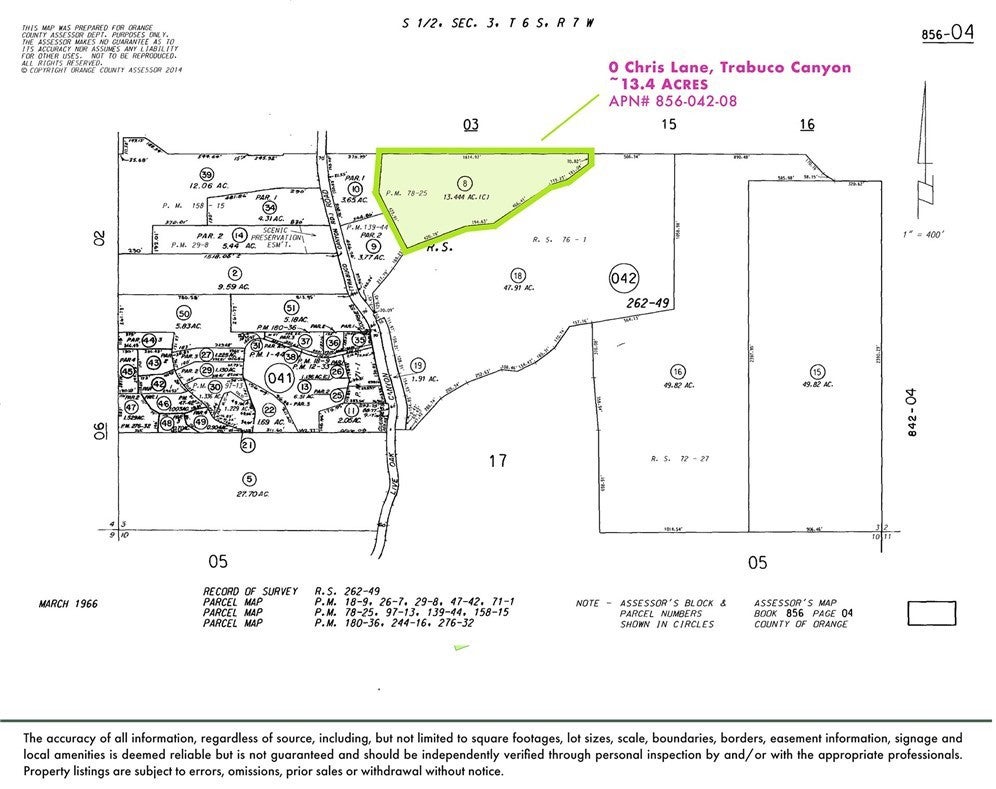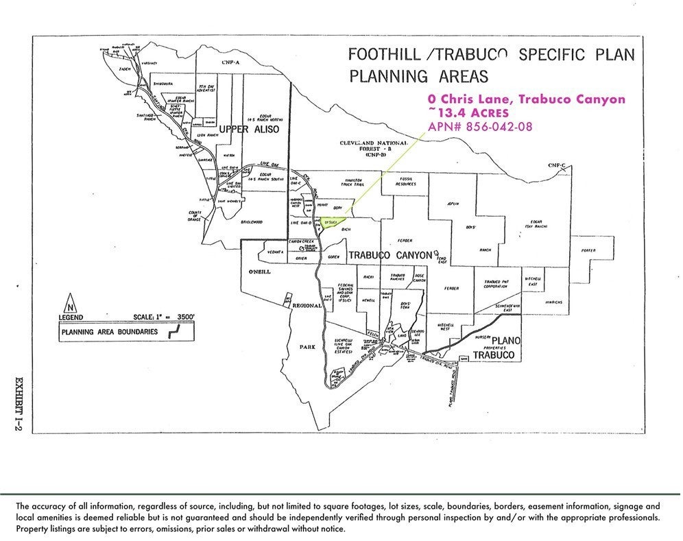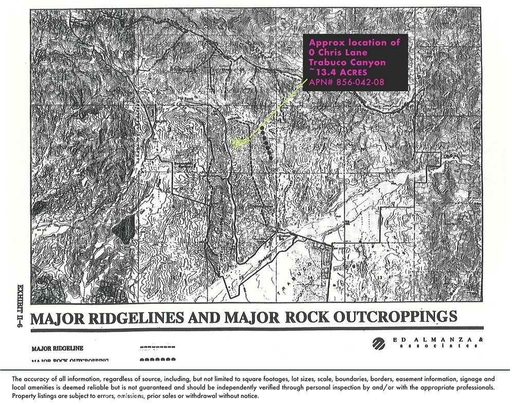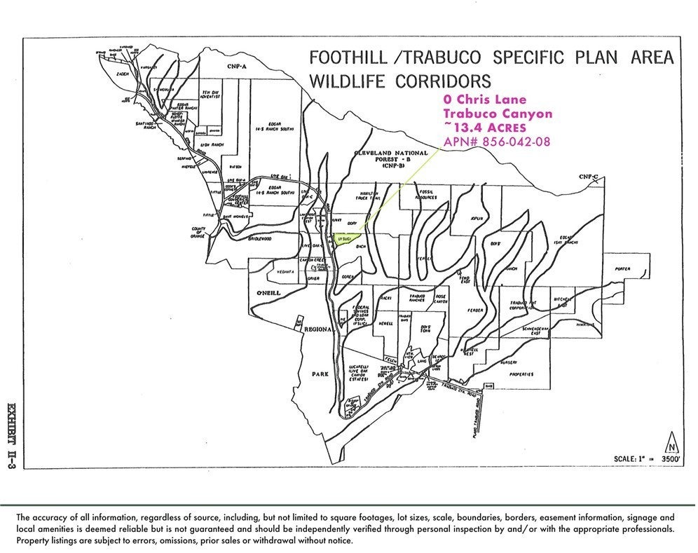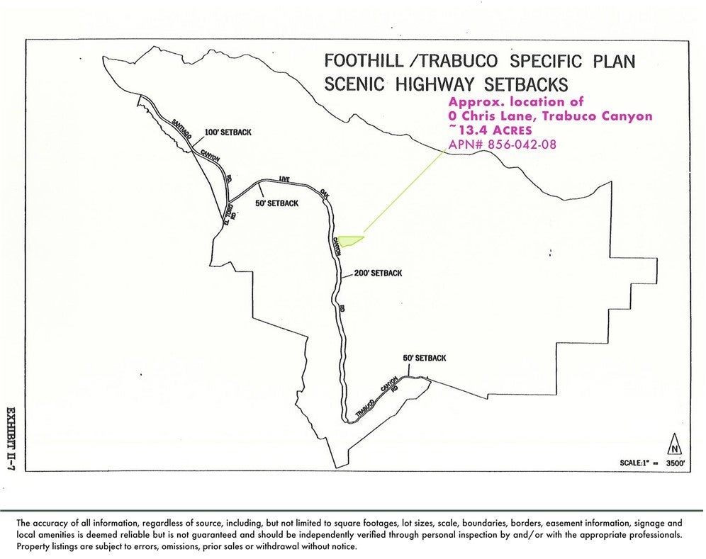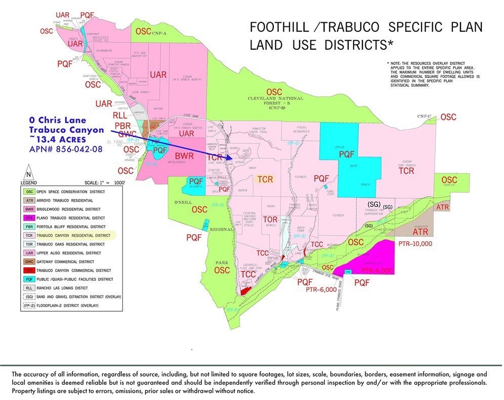 Located just off picturesque Live Oak Canyon Road in Trabuco Canyon, this parcel is 13.4 acres of precious raw, rural land in Orange County - a truly rare commodity. Build an equestrian dream home overlooking the rural canyon, use it for conservation or mitigation banking purposes or - keep it as is and preserve it for future generations. This property has rolling hillsides, oak canyons, and views that stretch for miles, all located within a short drive to Rancho Santa Margarita & Mission Viejo. Get the best of both worlds - rugged and raw living only minutes from shopping, dining, grocery stores, great schools, and hiking & biking trails. The 241 toll road is less than 10 minutes away - get away to the beach or business centers of Irvine & Newport Beach in 20 - 30 minutes. The property is subject to the "Foothill/Trabuco Specific Plan" (FTSP) which was crafted to preserve the character of the canyons; the FTSP limits the uses of the property but ensures that the canyon areas will be developed responsibly and stay beautiful for generations to come. Development of three (3) dwelling units is possible per the FTSP, subject to satisfying development requirements of the FTSP & County of Orange.