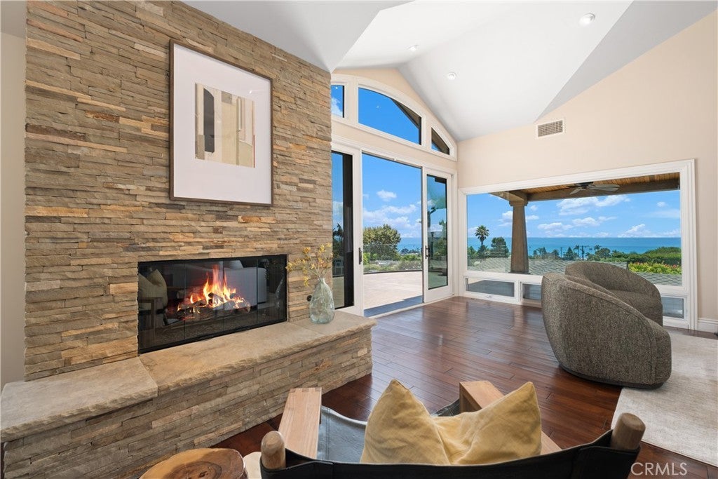 North Laguna Beach Luxury Home with Panoramic Ocean and Catalina Views Experience modern coastal living at its finest in this luxury ocean-view home in North Laguna Beach, California. Nestled above the coastline on a private, gated lot, 535 High Drive offers sweeping Pacific Ocean, coastline views from nearly every room. Enter through a lushly landscaped stone courtyard with a tranquil water feature and into a world of contemporary coastal design, featuring soaring ceilings, Brazilian cherry wood floors, and natural light-filled interiors. The open-concept great room with fireplace opens to an expansive ocean-view deck, perfect for entertaining or sunset dining. The chef-inspired kitchen is equipped with high-end Thermador and Bosch appliances, double ovens, dual dishwashers, custom cabinetry, stone countertops, a wine refrigerator, warming drawer, and reverse osmosis filtration system—crafted for the discerning cook. This home includes three ensuite bedrooms, with two primary suites designed for privacy and relaxation. The main-level primary suite features a spa-style bathroom with a heated soaking tub, walk-in shower, and direct deck access. The lower-level primary suite offers a fireplace, stone patio with fire pit and fountain, and a tranquil garden ambiance. Additional amenities include air conditioning, Tesla charger, and an oversized two-car garage with built-in storage. The gated driveway can also serve as an additional entertaining terrace in total privacy. Located near Heisler Park, Laguna’s beaches, village shops, restaurants, and art festivals, this property embodies the luxury coastal lifestyle of Laguna Beach real estate—offering the perfect blend of modern elegance and privacy.