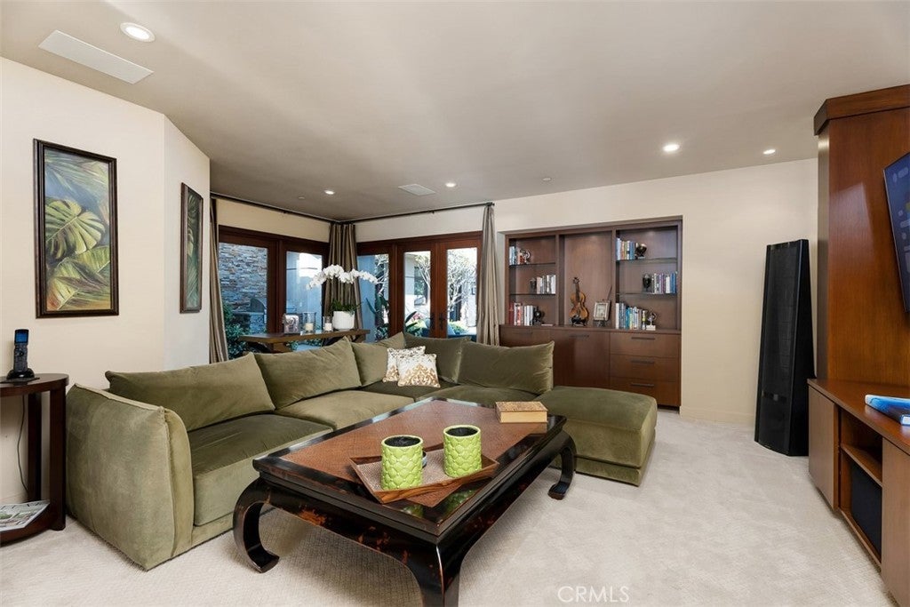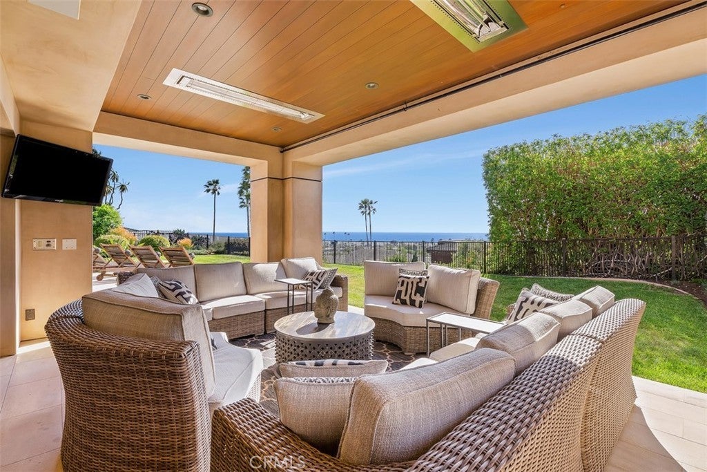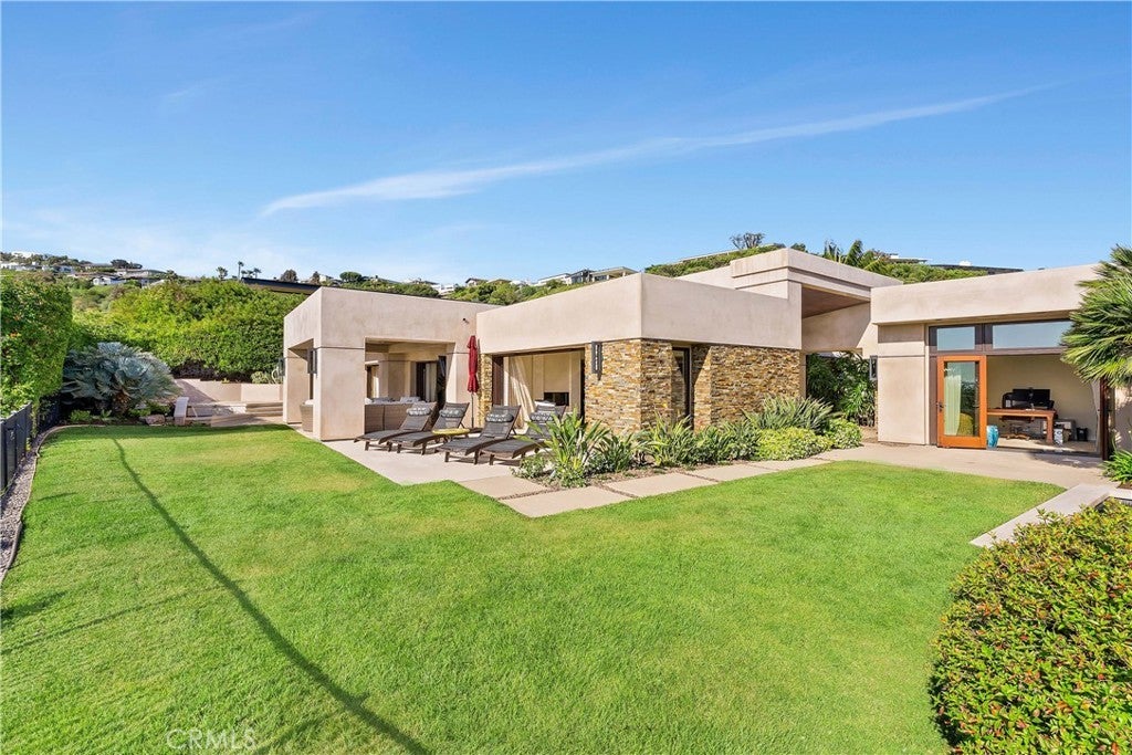 Welcome to 32661 Caribbean Drive, a distinctive, custom-built contemporary residence that exemplifies elegant coastal living in the prestigious Monarch Bay Terrace in Dana Point. Thoughtfully designed with integrity and sophistication, this single-level home sets on a sprawling 18,709 sqft lot on a serene, single-loaded street. Lush, professional landscaping surrounds the house, highlighted by a private swimming pool, spa, and tranquil waterfalls that create multiple outdoor living areas. Step through grand, solid mahogany double entry doors into an elegant foyer with soaring ceilings. From this moment, you are greeted by sweeping, ocean views and stunning vistas of Catalina and San Clemente Islands. The amazing open-concept design seamlessly connects the main living spaces, enhanced by multiple sets of 16-foot-wide solid mahogany disappearing sliding doors. These doors open to a covered patio and the lush backyard, allowing amazing daylight to pour into the living and dining rooms, and the exceptional chef’s kitchen featuring a 12-foot imported natural stone island, top-of-the-line appliances, double pantry, skylight, and extensive custom cabinetry. Imported limestone flooring flows throughout the main living areas, adding timeless beauty and warmth. A large set of French doors leads to a private interior courtyard, an entertainer’s dream, with a resort-style pool, waterfalls, a built-in BBQ, and mature landscaping. Adjacent family/theater room includes custom built-ins and dual French doors opening to front courtyard. The luxurious primary suite is a private retreat, featuring wide mahogany sliding doors opening to the backyard, a cozy fireplace, bamboo wood flooring, and an expansive custom walk-through closet. The spa-inspired primary bath includes dual vanities, limestone heated flooring, a soaking tub, a skylight, and an oversized shower with triple shower heads. Two spacious guest suites, each with French doors open to the front courtyard, offer great privacy for family and friends. Additional highlights include superior craftsmanship throughout, the whole-house lighting and sound controls, and integrated smart controls for the pool, spa, and fountains. This extraordinary home is ideally located near pristine beaches within a short drive to world-renowned resorts, including the Montage, Ritz-Carlton, and Waldorf Astoria, as well as the vibrant communities of Laguna Beach and Dana Point Harbor, known for dining, water sports, and coastal adventures.