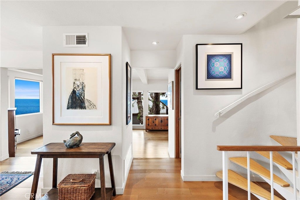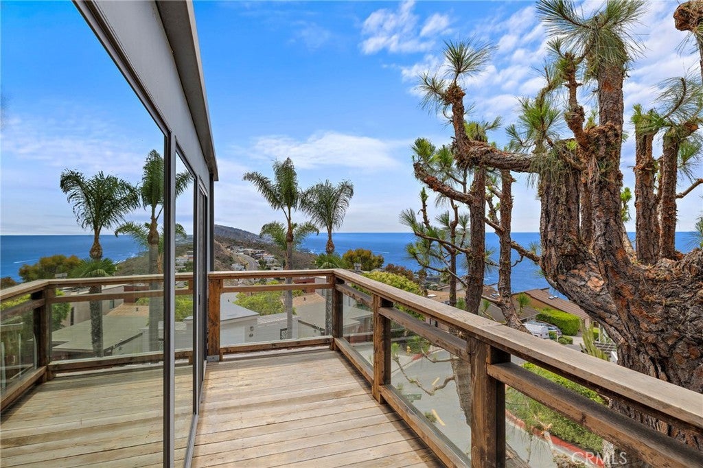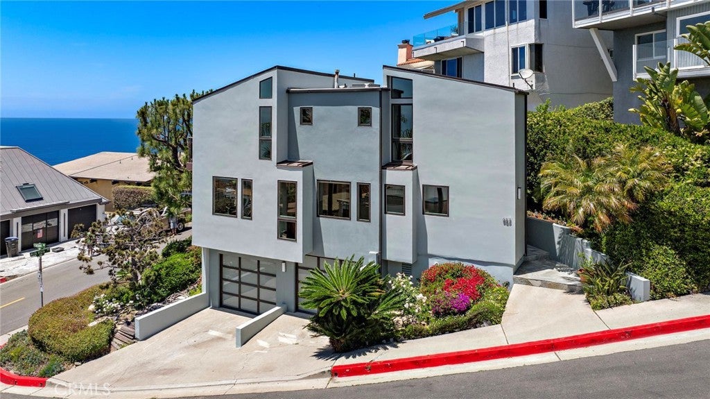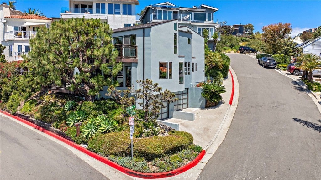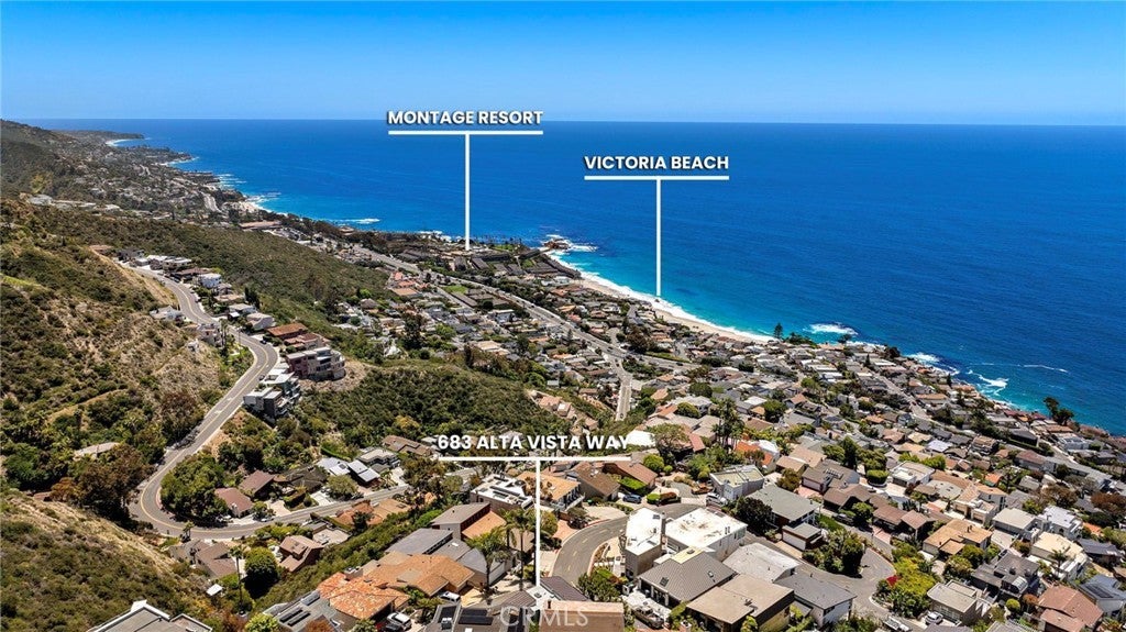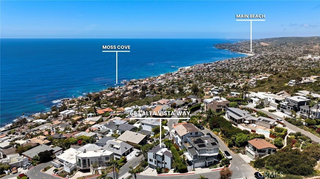 Coastline, ocean and sunset views abound from this contemporary home in Alta Vista. The bold, while comfortable design adds character and practicality, while feeling innovative and creative. Unique triangular lot, desirably situated on the corner of Fontana and Alta Vista Way. The home underwent a quality, complete interior remodel in the 2017 era that still lives new, along with new exterior stucco in 2023. Every room has an ocean view, including perspectives looking to north and south coastlines through the multitude of picture windows and sliding glass doors. Living, kitchen, indoor dining and outdoor deck spaces are on the main level. The bright Chef's kitchen is complete with stainless steel appliances, custom cabinetry and Brazilian Taj Mahal Quartz countertops with full backsplash. Three bedrooms and two baths upstairs, including beautiful use of Thassos & Blue Celeste marbles, French limestone and Taj Mahal Quartz stones. Warm wood elements throughout, including solid core mahogany doors, oak hardwood flooring and redwood framed glass railings and decking. Systems include updated copper plumbing, electrical wiring, lighting, roofing, gutters/downspouts, central heating with furnace one year new, Marvin dual paned windows and sliding doors. Two, finished single car garages are connected to interior laundry and additional storage rooms. Scenic Alta Vista neighborhood is known for it's endless ocean vistas, perched up above the ocean, yet not too high up for ease of access to the sands of Victoria Beach and nearby coves. A contemporary work of art takes care, craftsmanship and artistic touches. All of these elements have been infused into this residence over time, resulting in a remarkably quality property that is as timeless as it is functional.