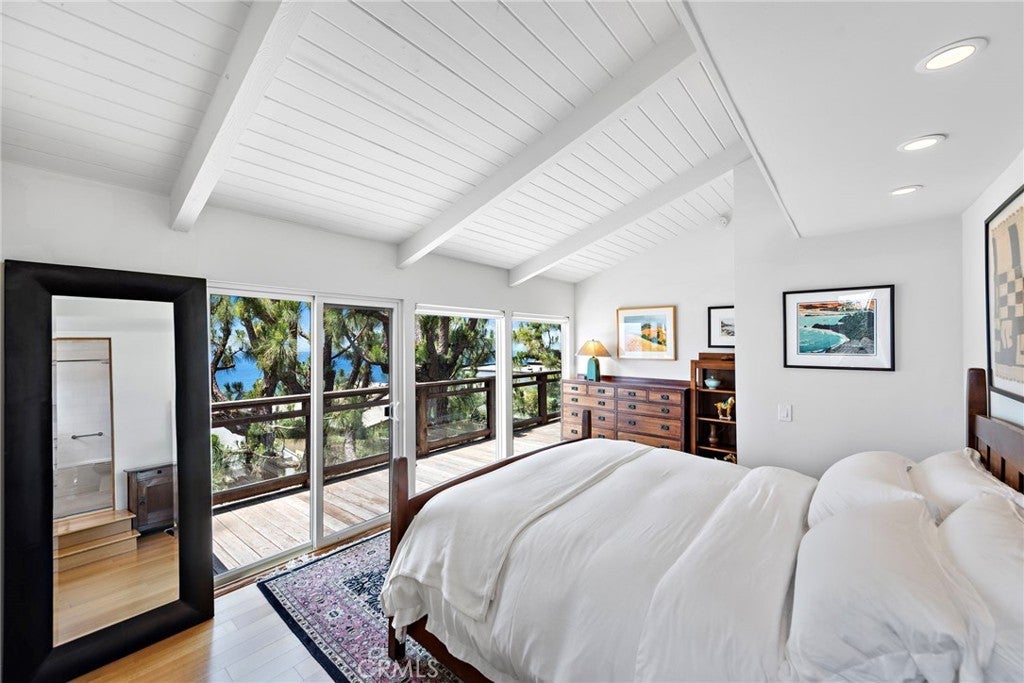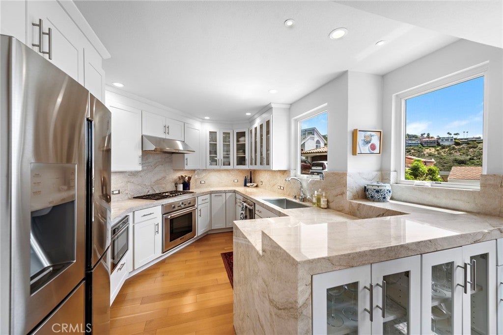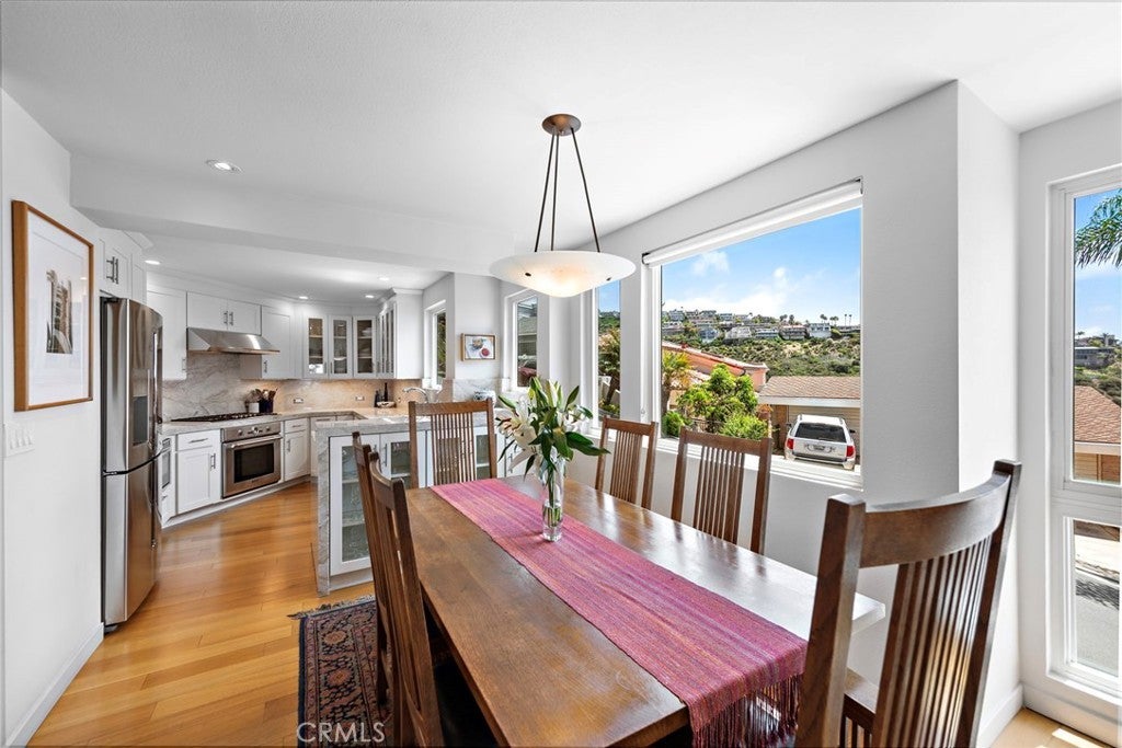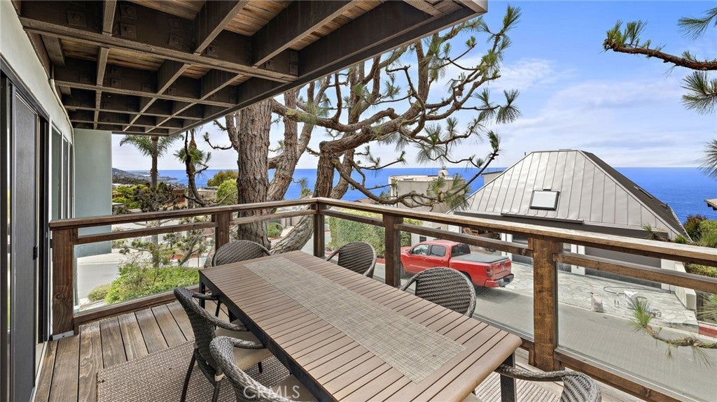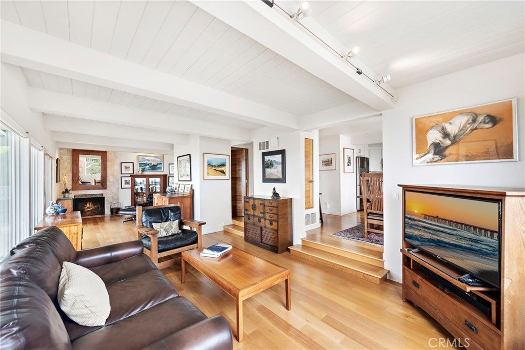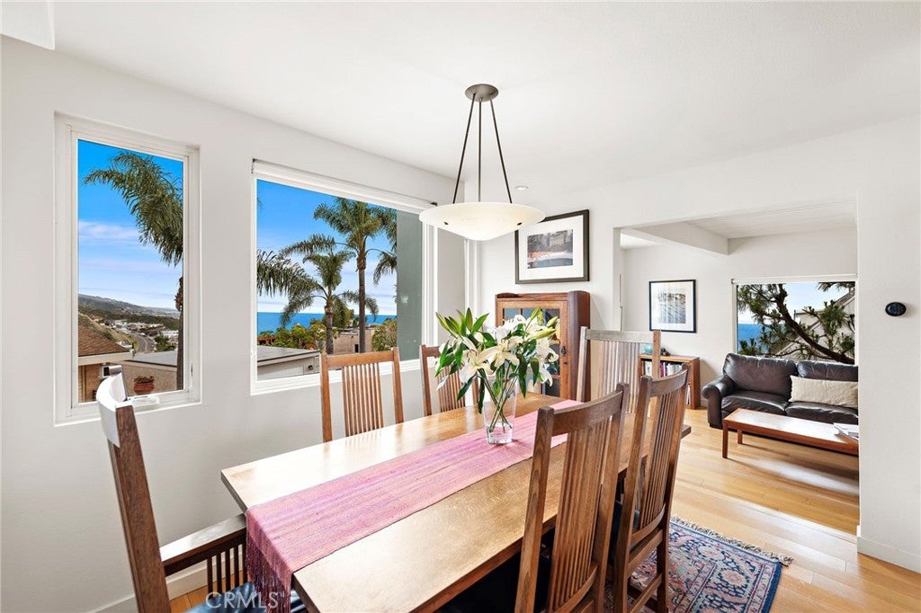 Coastline, ocean and sunset views abound from this contemporary home in Alta Vista. The bold, while comfortable design adds character and practicality, while feeling innovative and creative. Unique triangular lot, desirably situated on the corner of Fontana and Alta Vista Way. The home underwent a quality, complete interior remodel in the 2017 era that still lives new, along with new exterior stucco in 2023. Every room has an ocean view, including perspectives looking to north and south coastlines through the multitude of picture windows and sliding glass doors. Living, kitchen, indoor dining and outdoor deck spaces are on the main level. The bright Chef's kitchen is complete with stainless steel appliances, custom cabinetry and Brazilian Taj Mahal Quartz countertops with full backsplash. Three bedrooms and two baths upstairs, including beautiful use of Thassos & Blue Celeste marbles, French limestone and Taj Mahal Quartz stones. Warm wood elements throughout, including solid core mahogany doors, oak hardwood flooring and redwood framed glass railings and decking. Systems include updated copper plumbing, electrical wiring, lighting, roofing, gutters/downspouts, central heating with furnace one year new, Marvin dual paned windows and sliding doors. Two, finished single car garages are connected to interior laundry and additional storage rooms. Scenic Alta Vista neighborhood is known for it's endless ocean vistas, perched up above the ocean, yet not too high up for ease of access to the sands of Victoria Beach and nearby coves. A contemporary work of art takes care, craftsmanship and artistic touches. All of these elements have been infused into this residence over time, resulting in a remarkably quality property that is as timeless as it is functional.
