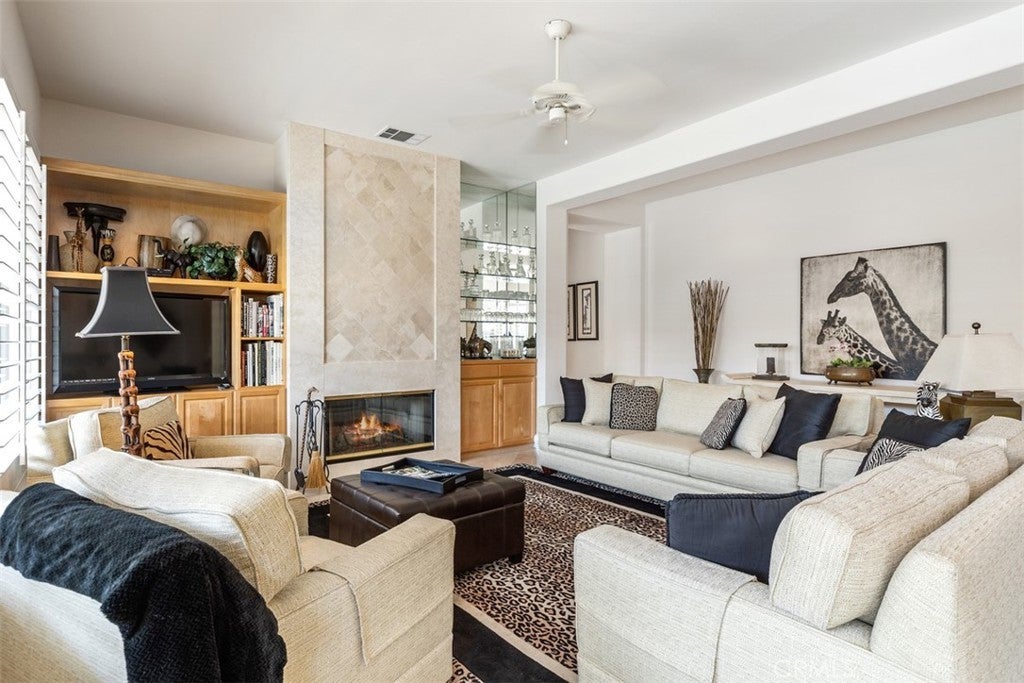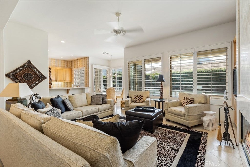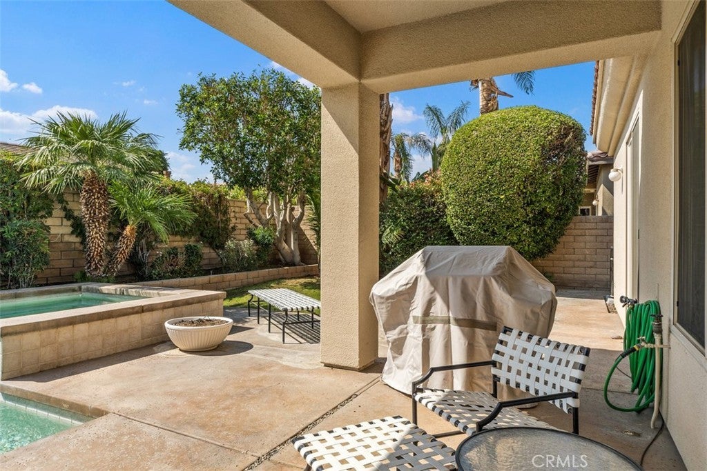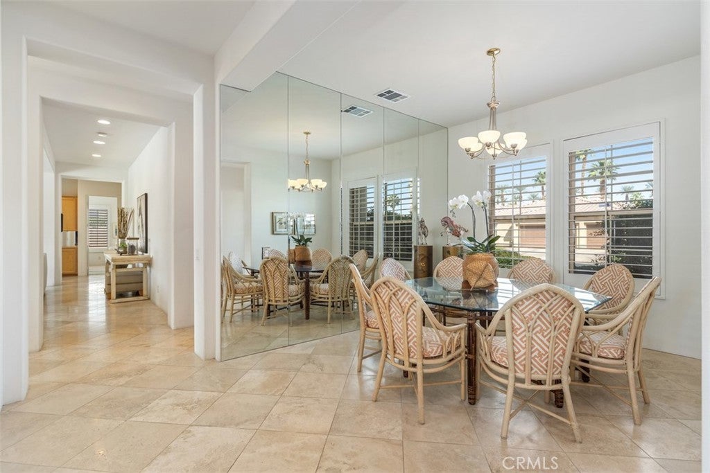 This charming single-story home in the exclusive Sundance Community offers the perfect desert lifestyle. With 3 bedrooms and 3.5 baths, this residence provides an ideal floor plan with the primary suite privately situated on one side and two additional en-suite bedrooms on the other, one of which can easily be converted back to an office. Entertain with ease in the formal dining and living areas, or opt for casual gatherings in the family room, which seamlessly connects to the kitchen and breakfast nook. The south-facing backyard is an entertainer's dream, featuring a heated pool and hot tub, perfect for relaxing while enjoying peaceful views of the Eisenhower Peak and Santa Rosa Mountains. The outdoor space is enhanced by newly planted landscaping and fruit trees. Adding to the convenience is a spacious 3-car garage, complete with built-in storage and durable epoxy flooring. Conveniently located in a small, gated community, Sundance offers easy access to the IW Club, tennis tournaments, hotels, and a variety of restaurants. This home is available fully furnished, allowing for a move-in ready experience.
