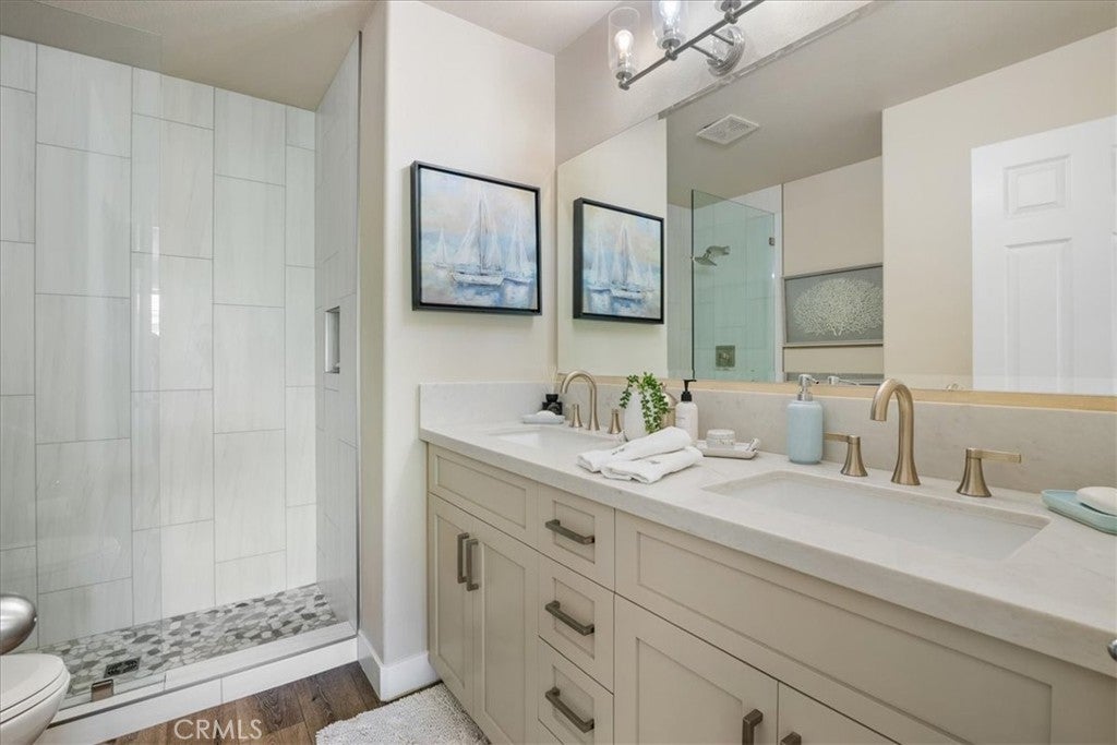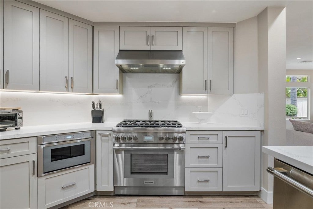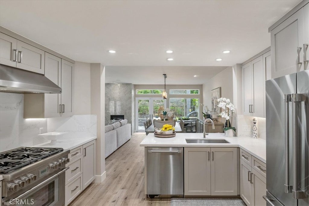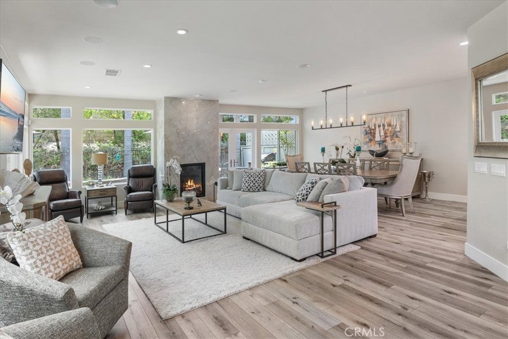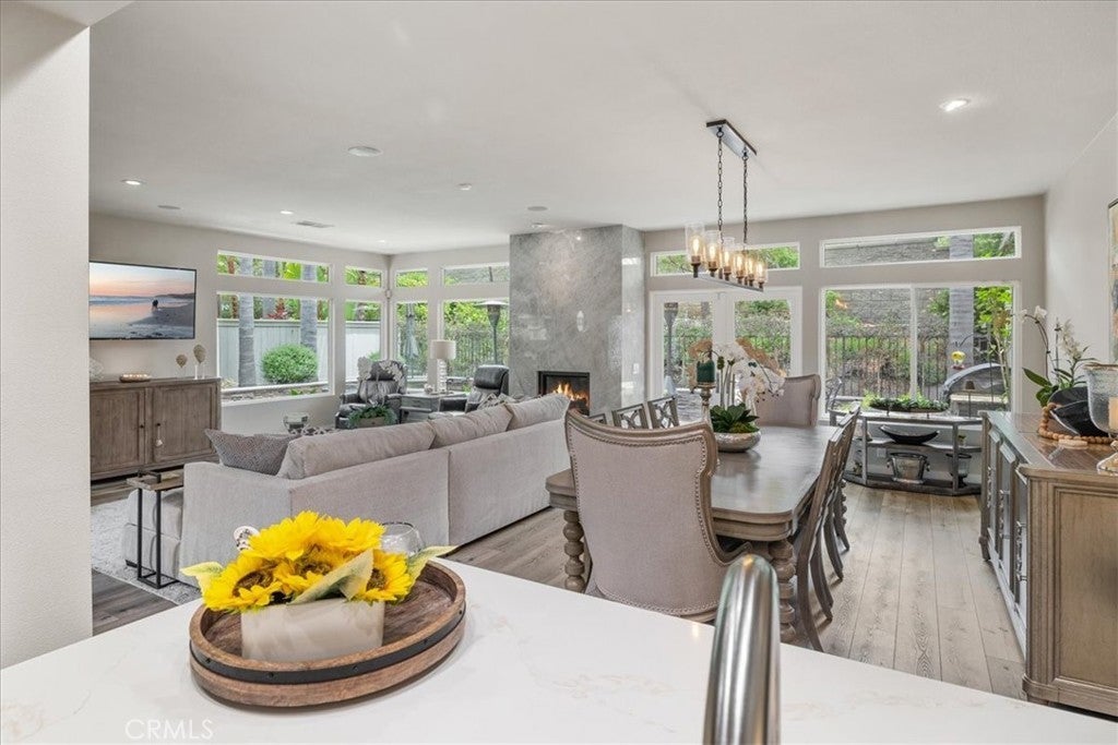 Located in South Laguna Niguel's prestigious Bear Brand area bordering Monarch Beach, this is a perfect primary residence or vacation home for those seeking paradise in South Orange County's beautiful coastal enclave. This elegant townhome looks, lives, and feels like a single-family detached home. This unbelievably stunning home has been completely remodeled and reimagined with the interior wall removed to create one large open concept space unlike most other homes in this neighborhood. With gorgeous, high-end upgrades and finishes, this property offers a rare opportunity to move into a turnkey designer masterpiece. Gracing the kitchen and bathroom countertops you'll find high-end Quartzite, which is also featured on the breathtaking fireplace. Step into this opulent home with high, two-story ceilings and large windows which showcase other beautiful features, such as fabulous art niches and modern touches throughout. The kitchen is equipped with Thermador appliances, beautiful custom cabinetry, and a fabulous laundry room with custom storage and Electrolux washer and dryer. This home has been re-piped with PEX piping and has newer dual paned windows. This fantastic floor plan boasts a large primary suite upstairs with a retreat (perfect for an office), two closets, one walk-in closet, and a sumptuous bathroom with large shower and separate soaking tub. There are two more bedrooms at the other end of the hall for superb privacy with a beautifully updated bathroom. The peaceful wraparound backyard features low maintenance landscaping, a built-in BBQ and fountain. Stoney Pointe is known for being well- maintained, quiet, private, peaceful, and close to everything! This home is within walking distance to Ocean Ranch Shopping Center, which offers the favorites: Trader Joe's, Peets, Cinepolis, Ralphs, Starbucks, Bottega Angelina, and many more shops and restaurants - it is the most convenient location! A beautiful walk or ride to Salt Creek Beach, Dana Point Harbor, and even Strands Beach Park, which are very close by. Ocean breezes are abundant here and there are stunning sunsets. A hidden gem in South Orange County! Rarely do these townhomes even come on the market since residents love them so much! The Shea Homes' architects created beautiful spaces in these homes that have stood the test of time and style. The location is excellent; it is close to the pool, spa and clubhouse and has ample guest parking. This truly is one of a kind and won't last!