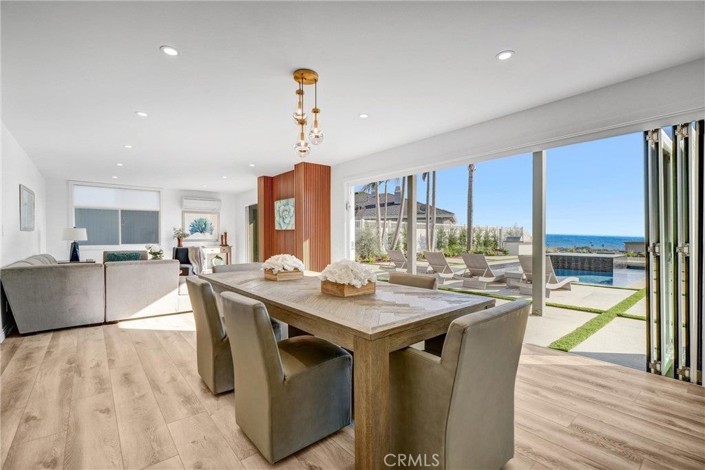 Welcome to this stunning Mid Century Modern ocean view residence located in highly sought after Monarch Bay Terrace very close to pristine beaches in Monarch Beach. Recently remodeled with top-of-the-line materials, folding doors, new flooring all throughout, all new beautiful kitchen with waterfall islands, new top-of-the-line appliances, fixtures & lighting. Best of all are the amazing outdoors with a newly built gorgeous pool & spa with waterfall, all new lighting and landscaping, built-in BBQ & firepit, all beautifully designed for year-round enjoyment of fabulous outdoor settings, ocean views & gorgeous sunsets. As you enter through double entry doors to this very private fully gated courtyard that leads you to elegant front doors to main level with all open floor plan which offers sets of folding doors creating the best indoor outdoor settings an informal living room, dining room & awesome kitchen & artfully designed fireplace all to enjoy great ocean views and newly built full bath to be accessed from pool & spa and convenient laundry room and new walk-in pantry too. A few steps up to mid-level to an amazing great room with 3 sets of tall sliding doors open to a balcony for enjoying even more stunning ocean views, while you can entertain family and friends. The second floor offers an elegant primary suite with a fireplace. And has its own balcony, 3 other bedrooms, 2 of which also feature great ocean views overlooking a gorgeous pool & spa with falls, 4th bedroom that overlooks the very serene backyard with grown trees. With a very short drive, one can visit 3 of the fabulous five-star resorts of Montage Ritz-Carlton, Waldorf Astoria, and the adjacent Monarch Golf resort, great restaurants, and Dana Point Harbor & Laguna Beach. The Newport Harbor & Fashion Island in Newport are not far away, neither is John Wayne Airport.