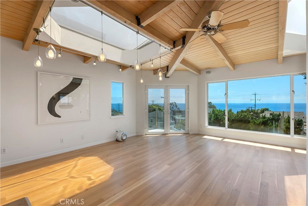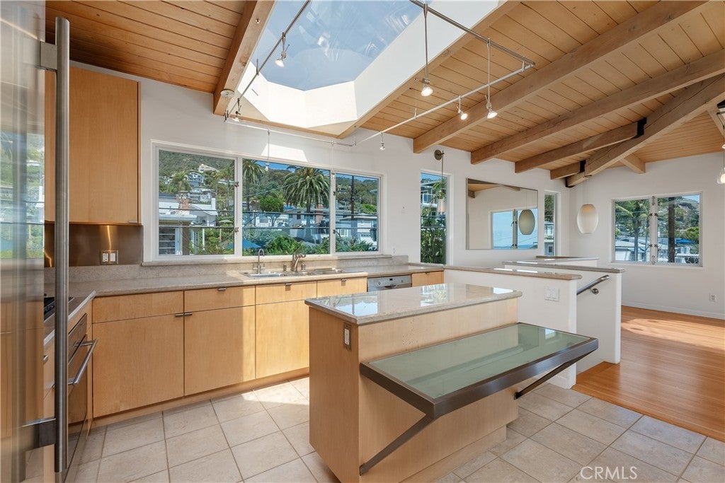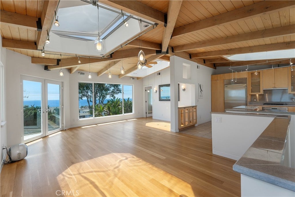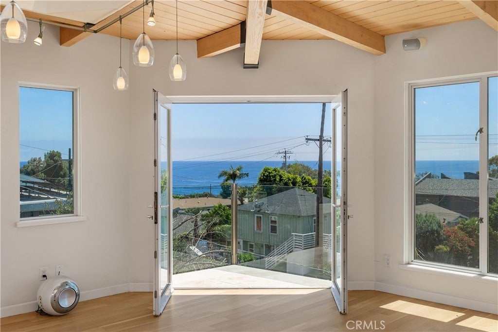 Sophisticated Coastal Living with Panoramic Ocean Views This beautifully imagined, 2-bedroom, 2-bathroom home in Laguna Beach offers refined style and state-of-the-art features throughout. Enjoy sweeping ocean views from nearly every room in this sophisticated retreat, fully upgraded with new hardwood flooring, designer low-voltage lighting, a chef-caliber kitchen with Sub-Zero, Wolf and Bosch appliances, and custom built-ins. The main level features an open-concept layout, with four large skylights, where the living room flows seamlessly into the modern kitchen and out to a deck—perfect for indoor-outdoor living and soaking in stunning coastal vistas. The primary suite on this level also enjoys ocean views and a luxurious, spa-inspired en-suite bathroom including a Toto toilet with built-in bidet. Downstairs, discover a versatile second suite that can serve as an entertainment center, office, or flex space, complete with a full bathroom, and with French doors leading to a spacious hardwood deck. Additional highlights include a Sub-Zero wine fridge, built-in surround sound A/V system, and a two-car garage with extensive cabinetry, a Bosch washer & dryer, and laundry sink. Thoughtful finishes throughout include travertine, blue limestone, white marble, and double-glazed windows. It also has a high-end, full Water Techniques water softening system and drinking water filtration. The owner pays for housekeeping every two weeks and weekly landscaping and patio fountain maintenance. It is an easy walk to Thousand Steps, Table Rock and West Street beaches, local dining, and shopping, with quick access to coastal cities. Also just steps away is a stop of the Laguna Beach Trolley, the city’s new free coastal transit service. Move-in ready and designed for the ultimate Laguna lifestyle, this previously owner-occupied home is the perfect blend of comfort, luxury, and convenience.