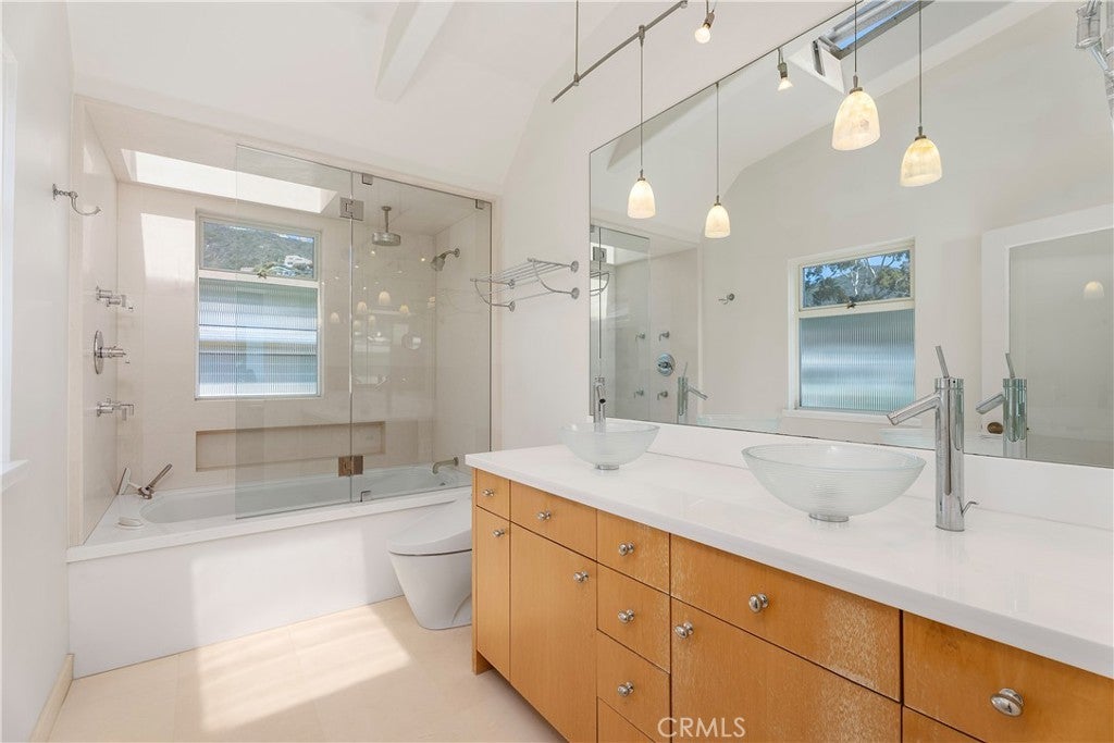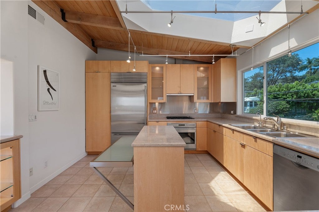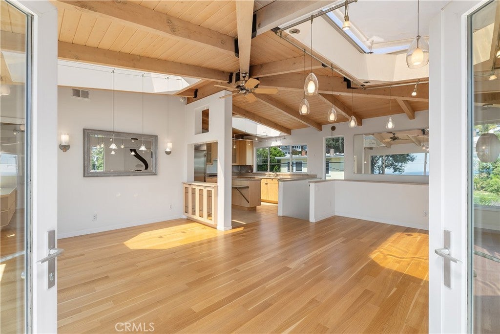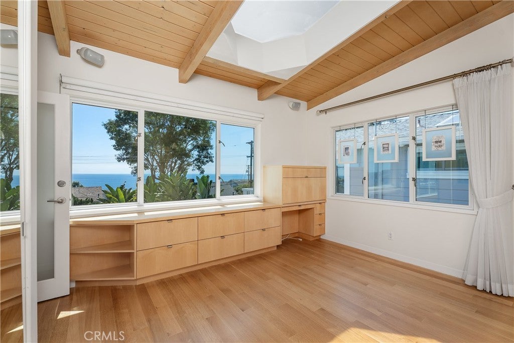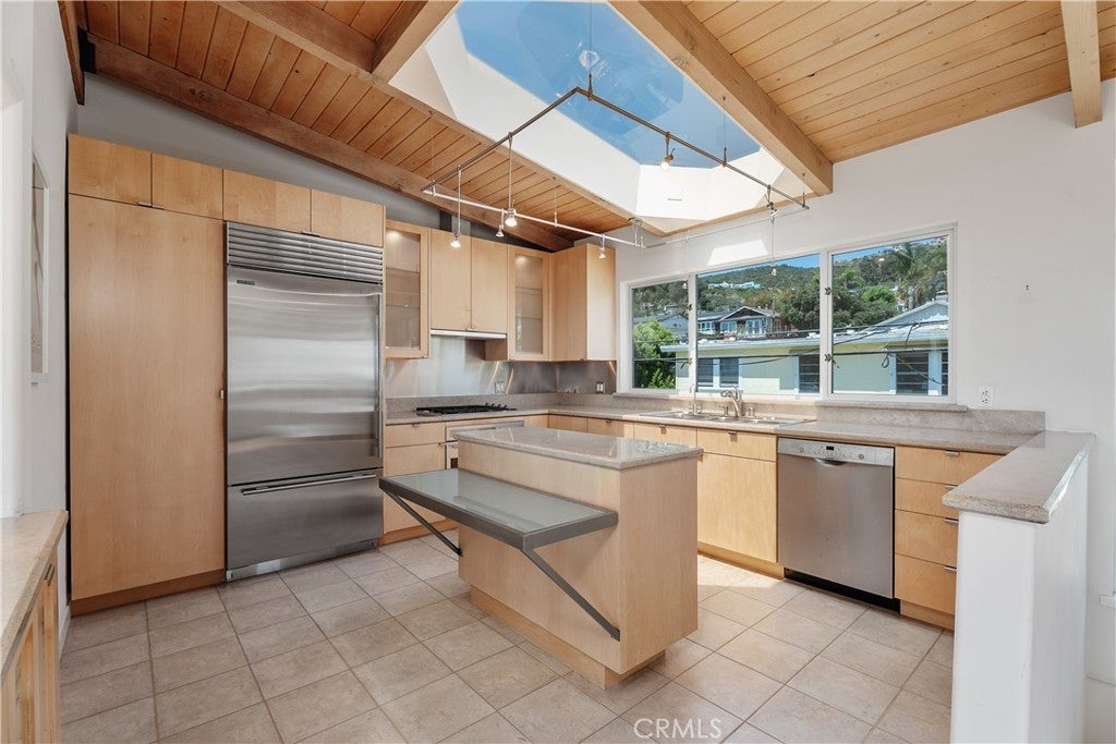 Sophisticated Coastal Living with Panoramic Ocean Views This beautifully imagined, 2-bedroom, 2-bathroom home in Laguna Beach offers refined style and state-of-the-art features throughout. Enjoy sweeping ocean views from nearly every room in this sophisticated retreat, fully upgraded with new hardwood flooring, designer low-voltage lighting, a chef-caliber kitchen with Sub-Zero, Wolf and Bosch appliances, and custom built-ins. The main level features an open-concept layout, with four large skylights, where the living room flows seamlessly into the modern kitchen and out to a deck—perfect for indoor-outdoor living and soaking in stunning coastal vistas. The primary suite on this level also enjoys ocean views and a luxurious, spa-inspired en-suite bathroom including a Toto toilet with built-in bidet. Downstairs, discover a versatile second suite that can serve as an entertainment center, office, or flex space, complete with a full bathroom, and with French doors leading to a spacious hardwood deck. Additional highlights include a Sub-Zero wine fridge, built-in surround sound A/V system, and a two-car garage with extensive cabinetry, a Bosch washer & dryer, and laundry sink. Thoughtful finishes throughout include travertine, blue limestone, white marble, and double-glazed windows. It also has a high-end, full Water Techniques water softening system and drinking water filtration. The owner pays for housekeeping every two weeks and weekly landscaping and patio fountain maintenance. It is an easy walk to Thousand Steps, Table Rock and West Street beaches, local dining, and shopping, with quick access to coastal cities. Also just steps away is a stop of the Laguna Beach Trolley, the city’s new free coastal transit service. Move-in ready and designed for the ultimate Laguna lifestyle, this previously owner-occupied home is the perfect blend of comfort, luxury, and convenience.