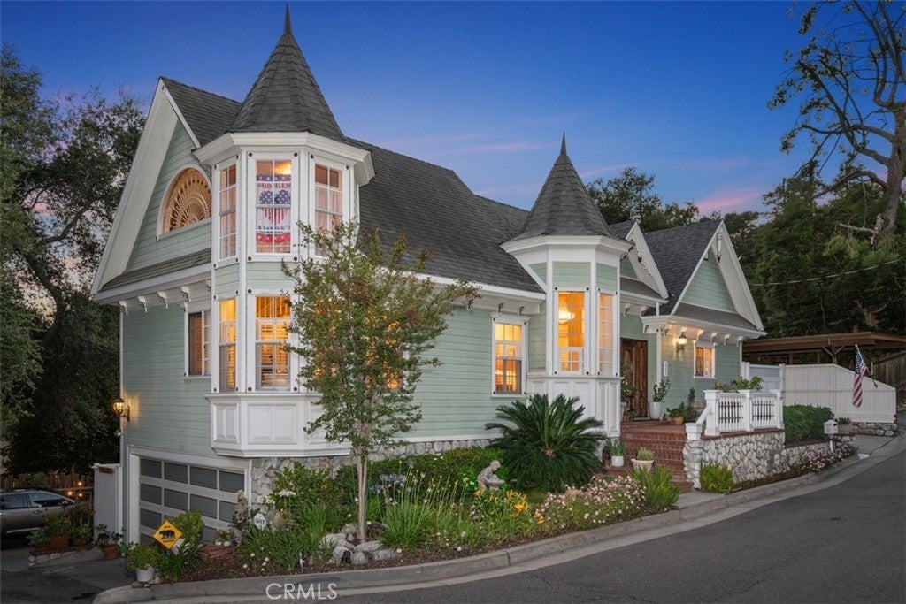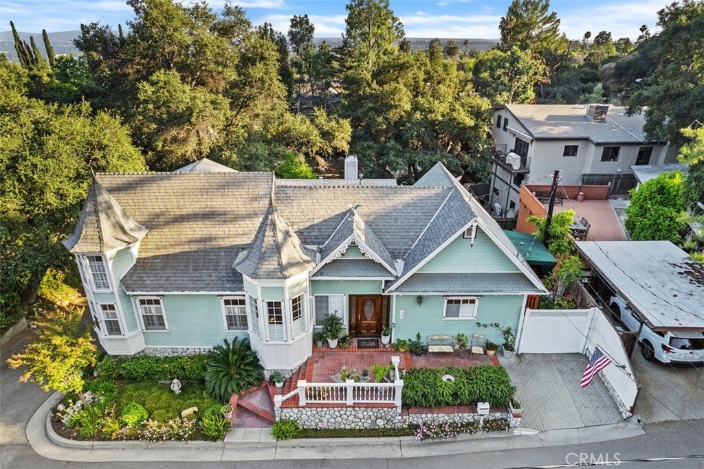 Tucked away, in a historic town called Sierra Madre. At the foothills of the San Gabriel Valley and below the southern edge of the Angeles National Forest. Surrounded by lush green trees and beautiful wild flowers, the wind whistles through. Crisp air and occasional wild life make for a peaceful setting no matter the time of day. This timeless Victorian masterpiece, is now open for new memories to call your own. Newly built in 1989, with the great outdoors in mind, windows were placed throughout the home to welcome the nature that surrounds. Backed to a Private Road is a 2 car garage. A third option carport is on the North-West side of the property. Morning coffee or afternoon tea favorite spots are out front on the porch bench or in the covered sun room open breezeway. Meticulously maintained and well-loved. Upon entering is a cozy living space. An open floorplan makes for a spacious feel. The expansive master suite is located on the main floor. A gorgeous wooden staircase provides optional separate living with 2 additional bedrooms, a full bath, and a sitting room. French doors lead to a near wrap around patio currently enjoyed as an outdoor lounge area. Additionally, an estimated 300 square foot attic space (not included in advertised square footage) with high ceilings has been converted into a fully functionally living space. Feel like taking a walk or hike? This is the place to do it! Explore local beautiful sites, curbless roads, churches, and Downtown shopping and dining. With the city life close by, you will find this location, the perfect getaway, to call home.