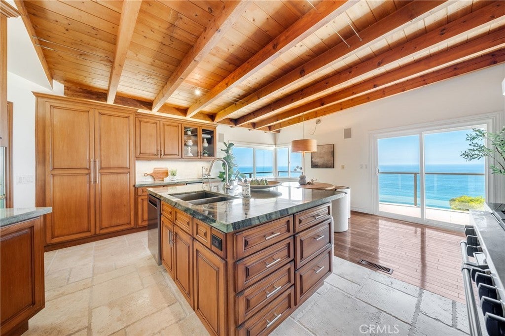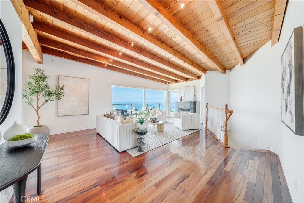 Set overlooking Laguna Beach on the serene and sought-after Coast Royale in Laguna Beach, 31272 Ceanothus Drive takes in panoramic views that stretch from the Montage Resort and Emerald Bay to the distant skyline of Long Beach. Catalina Island sits perfectly centered in the horizon, providing a daily front-row seat to the ever-changing, remarkable sunsets. A spacious deck off the main living area invites the sort of outdoor living we treasure in Southern California, providing a perfect setting to unwind and take in the tranquility. It’s an inspiring backdrop for calm mornings, creative thinking, or simply enjoying the moment. Inside, the home features soaring beamed ceilings in the living room and beautiful hardwood floors that add warmth and character throughout. The kitchen and living areas flow seamlessly to the outdoor spaces, creating an expansive, view-filled space to relax or entertain. The kitchen is a centerpiece for the home - outfitted to encourage your inner chef in an inspiring setting. The primary suite is privately situated and generously sized, with whitewater views that greet you each morning. Open the windows and let the rhythmic sound of crashing waves lull you to sleep. In addition to the main living areas, the home includes several versatile flex spaces to suit your lifestyle. One room features built-in shelving and a custom desk, making it ideal for a home office. Another space offers the perfect setting for a home gym or creative studio. An oversized laundry room adds extra function and convenience, with room for storage or expansion. The beach is just a short jaunt, and a favored 'locals' park and restaurants allow you to enjoy life without leaving your neighborhood. 31272 Ceanothus Drive a wonderful opportunity to enjoy elevated coastal living in a peaceful Laguna Beach neighborhood, just minutes from the best of Laguna Beach and southern California!