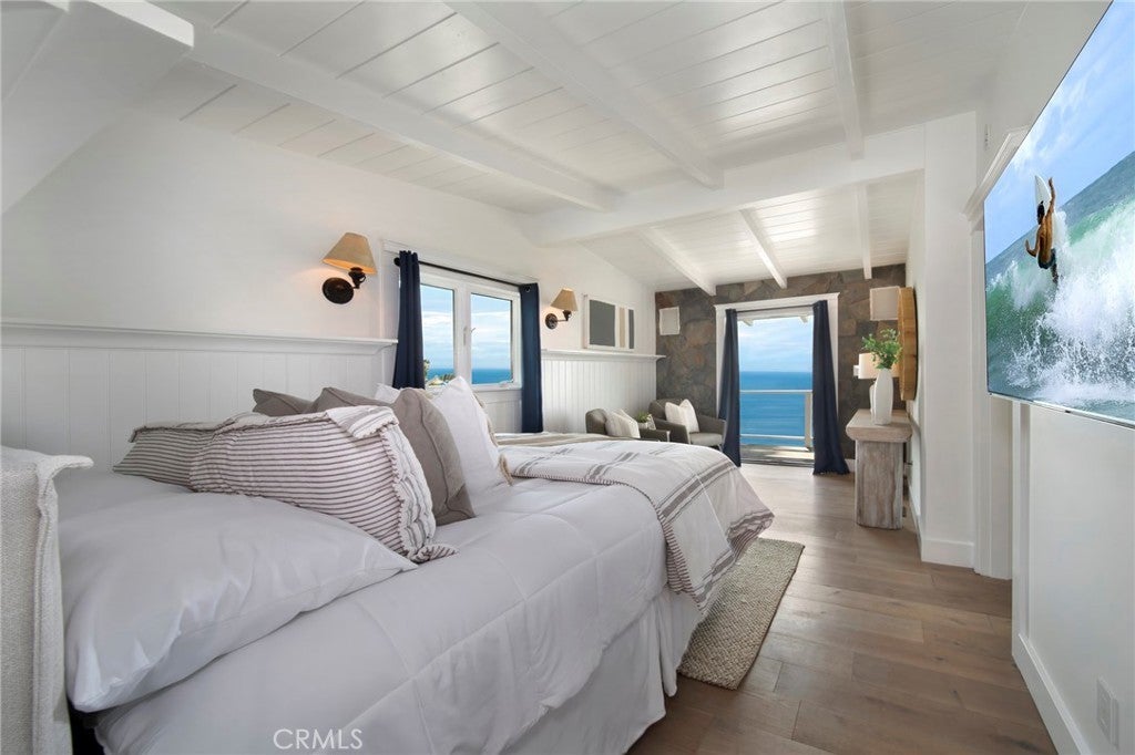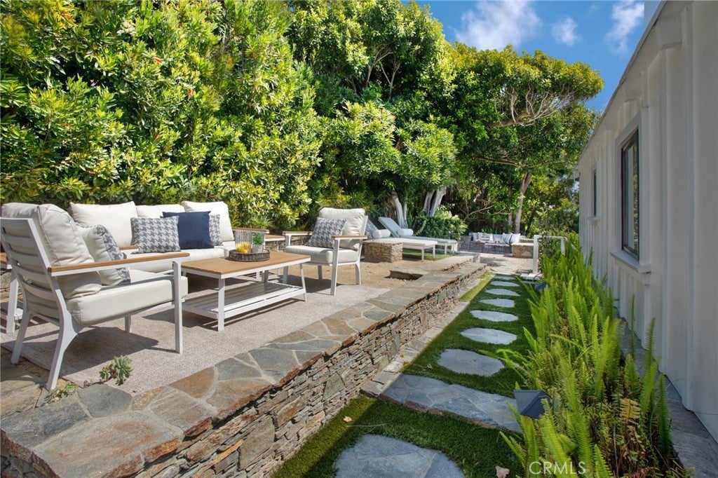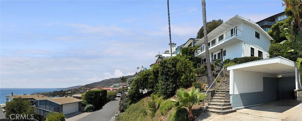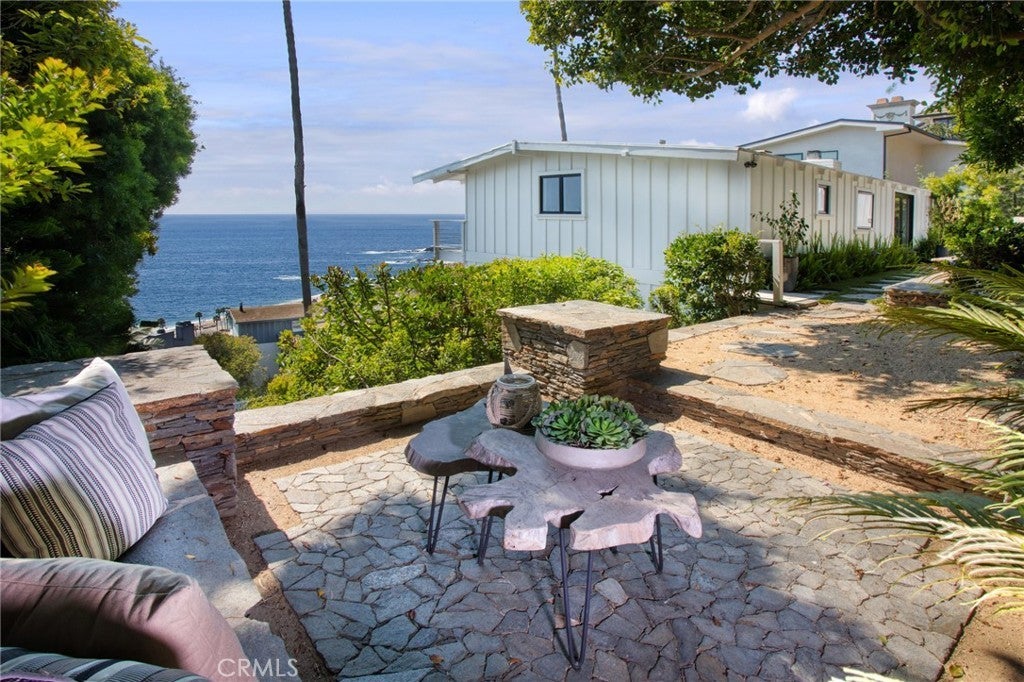 Perched on a prime lot in the prestigious COAST ROYALE area of South Laguna Beach, this coastal gem boasts breathtaking ocean views including whitewater, Catalina Island to Palos Verdes, and sandy beach/coastline views. The 7500 square foot lot spotlights spacious and serene patio areas designed to enjoy the view and to entertain while capturing the spectacular endless ocean and sunset views. The upper level features an open designed kitchen/family room and dining room area complete with walk-in pantry, an office alcove and the primary bedroom suite...all with panoramic ocean views and all with doors opening to a large view deck and to secluded patio areas. The main entry, on the lower level, includes a living room with cozy fireplace and library nook and amazing ocean views, a main floor bedroom which opens to a lovely view patio, a secondary bath and inside laundry room. The property includes a one car carport, flagstone steps and patio areas. This delightful property includes wood plank flooring, open beam ceilings, newer Tankless hot water heater, sound/media system, stainless steel Gaggenau gas cooktop and two ovens plus commercial style Subzero refrigerator, newer white cabinetry and a farmhouse sink. This fun BEACH HOUSE property offers one of the best views in Laguna Beach while nestled in a natural seaside setting. Live your dream beach life in this coastal retreat providing stunning ocean views, charm and tranquility.