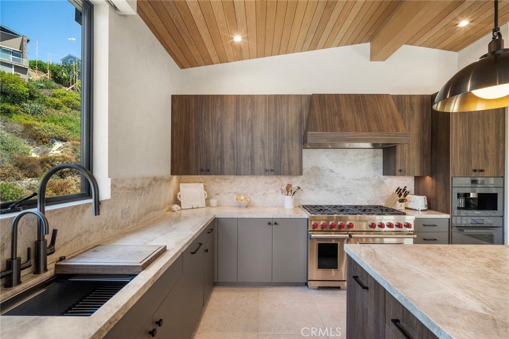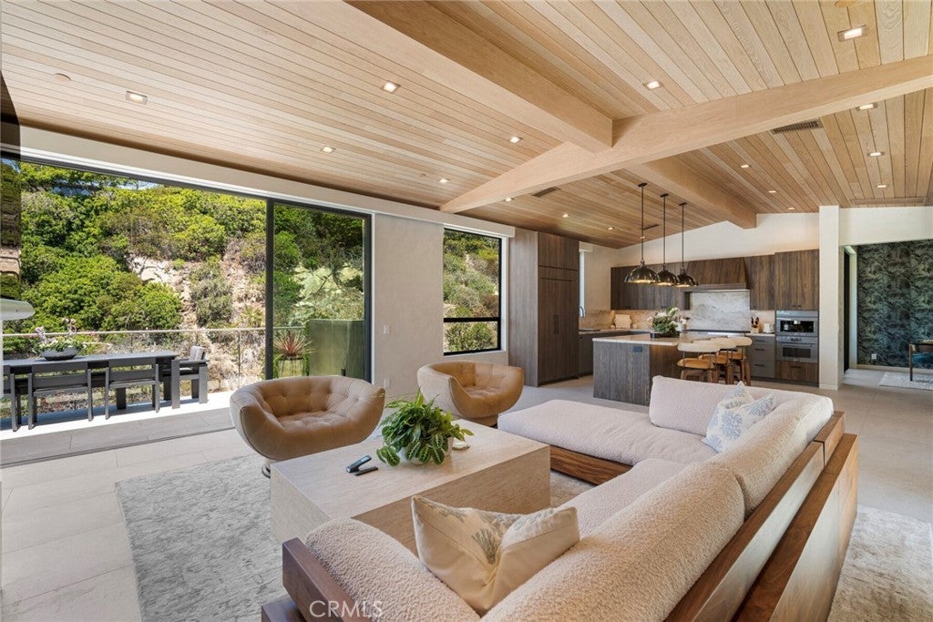 Brand New Contemporary Coastal Retreat with Ocean & Canyon Views Completed in 2024, this striking contemporary coastal masterpiece blends style, sophistication, and seaside charm. Situated in Laguna Beach’s coveted Upper Diamond neighborhood, this approx. 2,500 sq ft, 3-bedroom, 3.5-bath architectural gem rests on a generous 8,000 sq ft lot, capturing ocean and canyon vistas from a serene, private setting—just minutes from the sand, acclaimed dining, and art galleries of Laguna Village. Inside, sunlit open spaces showcase wide-plank white oak and designer tile flooring, with soothing oyster-hued Venetian plaster walls that complement stone counters and sleek European-style cabinetry. The state-of-the-art chef’s kitchen boasts a Wolf 8-burner range with dual ovens, 48" Sub-Zero refrigerator and freezer, additional beverage Sub-Zero in the island, Miele dishwasher, built-in espresso/coffee maker, Miele speed oven/microwave, Sub-Zero wine cabinet, and Scotsman ice maker—every culinary luxury at your fingertips. The primary suite is a true sanctuary, featuring a private terrace with tranquil views, a spa-inspired bath, and a personal wet bar with Sub-Zero refrigerator. Thoughtful upgrades include solar panels, energy-efficient windows and doors, and an upgraded HVAC system for year-round comfort. A 2-car garage plus dedicated golf cart garage provide ample parking and storage. Outdoor living shines with a resort-style backyard, complete with a sparkling dipping pool and spa, spacious terraces, and an outdoor California room with privacy shades, built-in heaters, and a ceiling fan—perfect for year-round entertaining or peaceful sunset moments. 702 Diamond is more than a home—it’s a statement of contemporary coastal living at its finest.