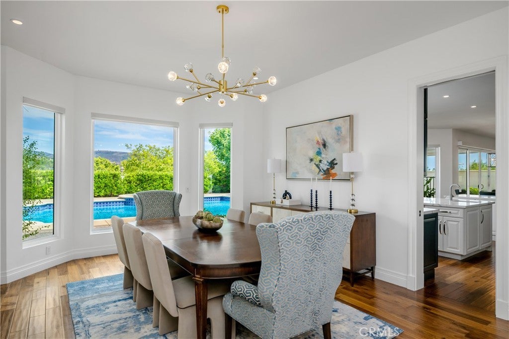 Nestled within the Forest section of the guard-gated community of Coto de Caza, this extensively upgraded custom home is an unmatched retreat. Set on an impressive, approx. 19,000 square foot lot situated on a single loaded cul-de-sac street behind its own gate, it offers privacy, panoramic views of the surrounding landscape, and luxurious, recently updated interiors. Spanning nearly 6,000 square feet of living area, this comprehensively remodeled residence features five bedrooms, including one on the ground level, five and a half baths, an office, and a den. Grand in scale, the floor plan encompasses formal sitting and dining areas as well as a more casual great room with a living section and the home’s all-new gourmet kitchen. This gourmet space with dual islands is complete with custom cabinetry, finishes, and a suite of top-of-the-line appliances. A fully built out pantry with additional storage, a sink and dishwashers complements the culinary haven. Accessed via oversized doors, the property’s stunning backyard with multiple seating sections is centered around the saltwater pool and spa. Ideal of enjoyment of the outdoors year round, this private space features a covered gazebo and an elevated viewing area for taking in the stunning vistas. The primary suite is located on the upper level - fully remodeled, it offers a balcony, a newly built out closet and a luxurious bathroom Clad in marble, this serene oasis with double vanities, a jetted tub, and a massive walk in steam shower is truly tranquil. The remaining secondary bedrooms are ample in size, with corresponding baths and walk-in closets. Whole house updates include a new HVAC system, water filtration, updated piping, new windows, doors, and walnut as well as marble flooring throughout. Coto de Caza’s residents have access to extensive amenities, including horse trails, a clubhouse, a state-of-the-art gym, and multiple pools in addition to tennis courts and two championship golf courses designed by Robert Trent Jones Jr. All of this just minutes away from area’s finest shopping and dining!