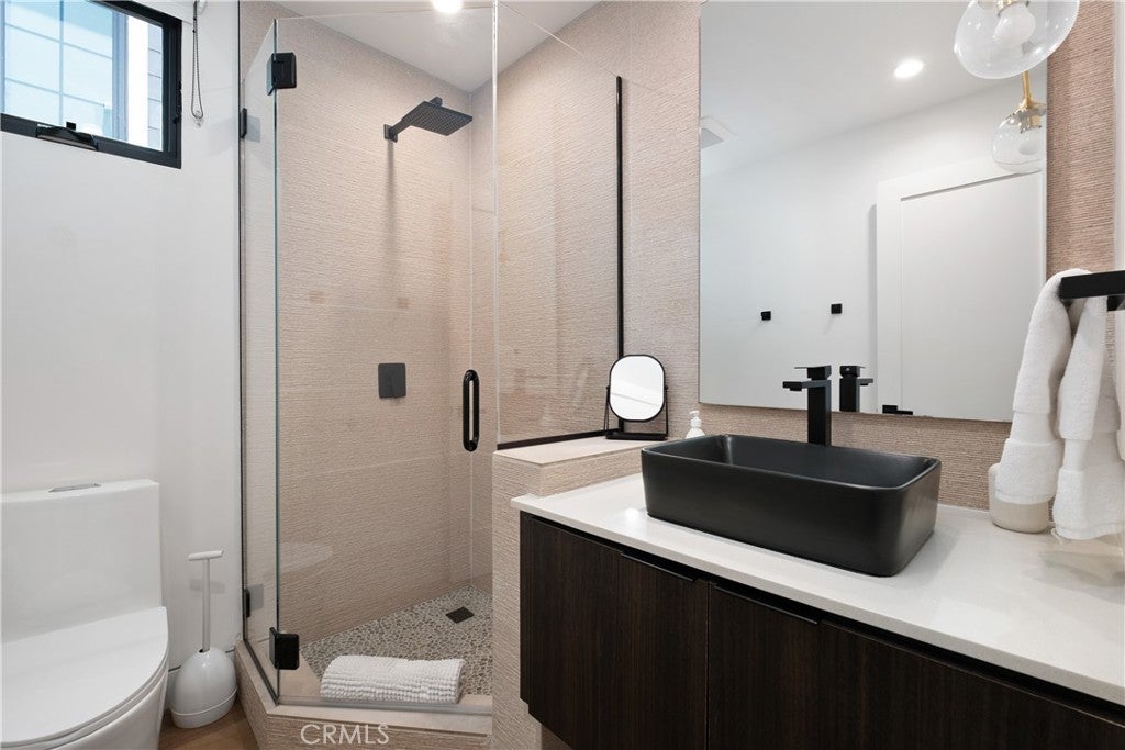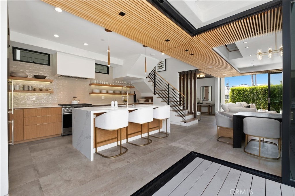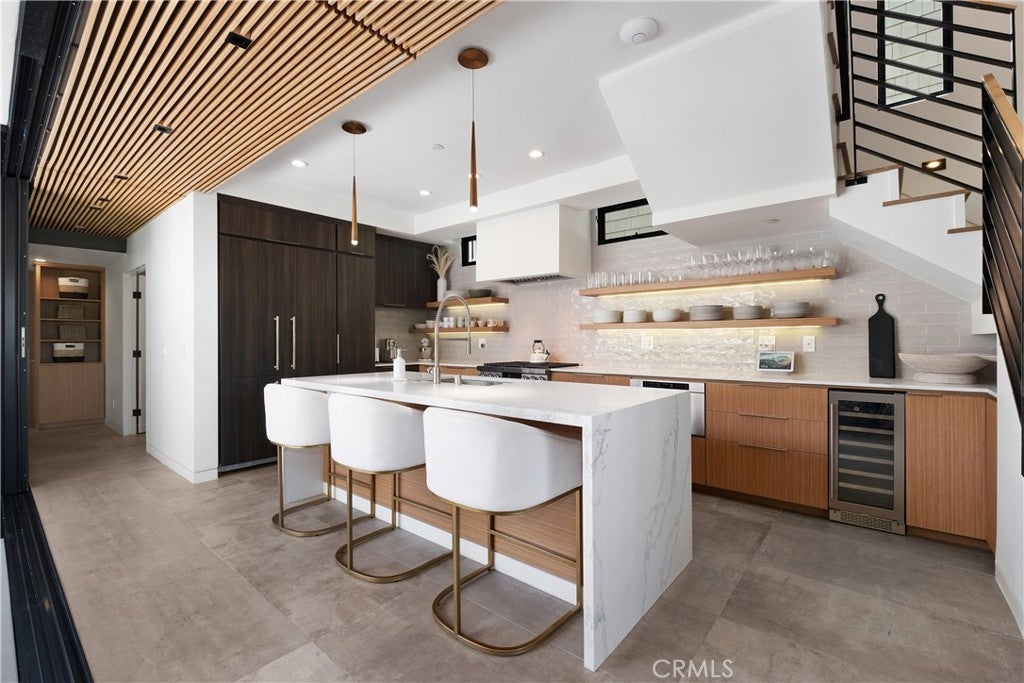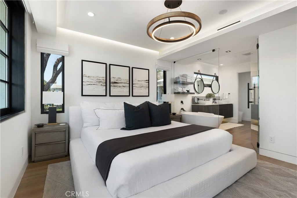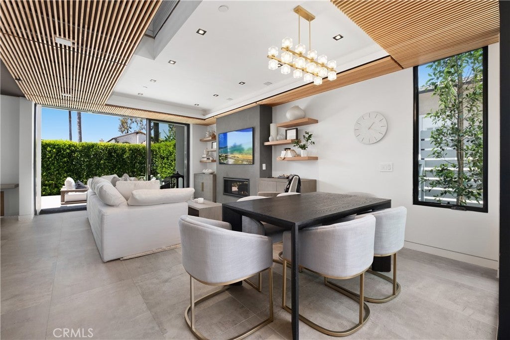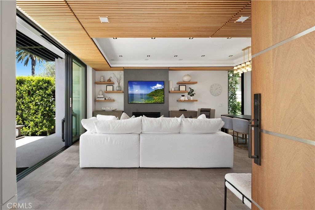 Modern Luxury Meets Coastal Living in the Heart of Corona del Mar Village Just moments from world-class shopping, renowned dining, and the iconic beaches of Corona del Mar, this newly constructed soft contemporary home embodies the essence of upscale coastal living. Perfectly positioned in one of CDM’s most desirable and accessible locations, this residence is a true architectural gem. Designed with both comfort and sophistication in mind, the four-bedroom, four-bathroom home offers a flexible floor plan featuring a rare first-floor bedroom or office with a full bath. The open-concept chef’s kitchen, equipped with premium Dacor appliances, flows seamlessly into a spacious great room. Expansive La Cantina glass doors create a natural transition between indoor and outdoor spaces, opening to multiple private patios—each complete with a fireplace, ideal for year-round entertaining and al fresco dining. Every detail has been curated for refined living, from Restoration Hardware furnishings to designer lighting, wide-plank oak and porcelain tile flooring, and Jeld-Wen windows. Advanced technology complements the elegance with Bluetooth surround sound and a Lutron smart home system for effortless control of lighting, sound, and climate. Each bedroom includes an en suite bath and custom closet built-ins, while the primary suite is a sanctuary of relaxation featuring a spa-inspired bathroom with a freestanding soaking tub, walk-in shower, and expansive walk-in closet. An additional guest suite occupies the second level, and the third-level bedroom opens to a stunning rooftop deck with sweeping village views—perfect for gatherings under the stars. Combining modern design, luxury finishes, and an unbeatable coastal location, this Corona del Mar residence delivers the ultimate Southern California lifestyle.