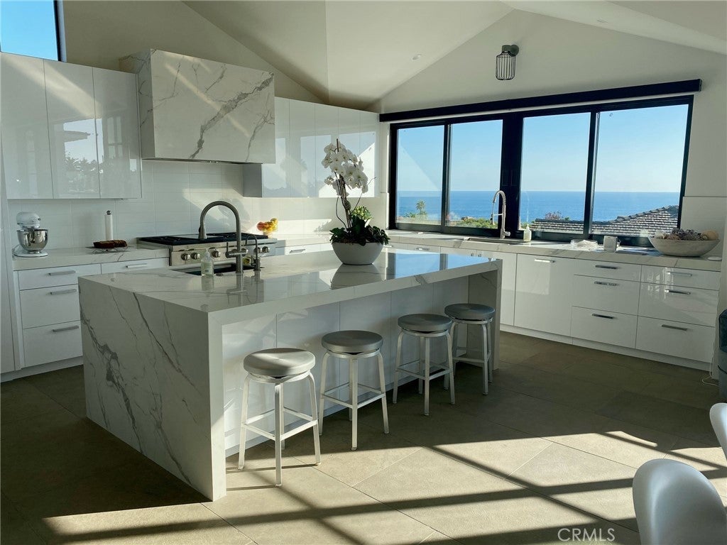 This exceptional custom-built home, completed in 2020, is now available for short-term lease. Ideally situated on the desirable flat 800 block of Emerald Bay’s New Hill, the property offers rare walkability to the community’s world-class amenities. Boasting breathtaking ocean views that stretch along the coastline, this 4,200 sq. ft. residence features four bedrooms and six bathrooms with no detail overlooked. The open-concept layout and main-level living are complemented by luxurious, high-end finishes throughout. The chef’s kitchen is a showpiece, equipped with top-of-the-line appliances, sleek slab porcelain countertops, dual dishwashers for effortless entertaining, and a built-in ice maker. The elegant primary suite is conveniently located on the main level and offers refined comfort and privacy. On the third level, you’ll find a versatile den/office combo with its own full bath—highlighted by a Japanese soaking tub with sweeping ocean views. The three secondary bedrooms are all en suite and situated on the lower level, alongside a spacious family/media room and a dedicated office area. Outdoor living is equally impressive, with a grassy yard, expansive ocean-view deck, built-in barbecue center, and your own personal pizza oven. The entire home is outfitted with a comprehensive water filtration system for added convenience and wellness. With full access to all of Emerald Bay’s sought-after community amenities, this is a rare rental opportunity in one of Laguna Beach’s most exclusive enclaves.