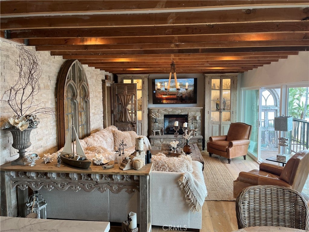 Beamed Ceilings, Breakfast Bar, Balcony, Ceiling Fan(s), Living Room Deck Attached, Quartz Counters, Recessed Lighting, All Bedrooms Down, Bedroom on Main Level, Main Level Primary, Utility Room, Built-in Features, Eat-in Kitchen, Open Floorplan, Pantry, Stone Counters, Storage