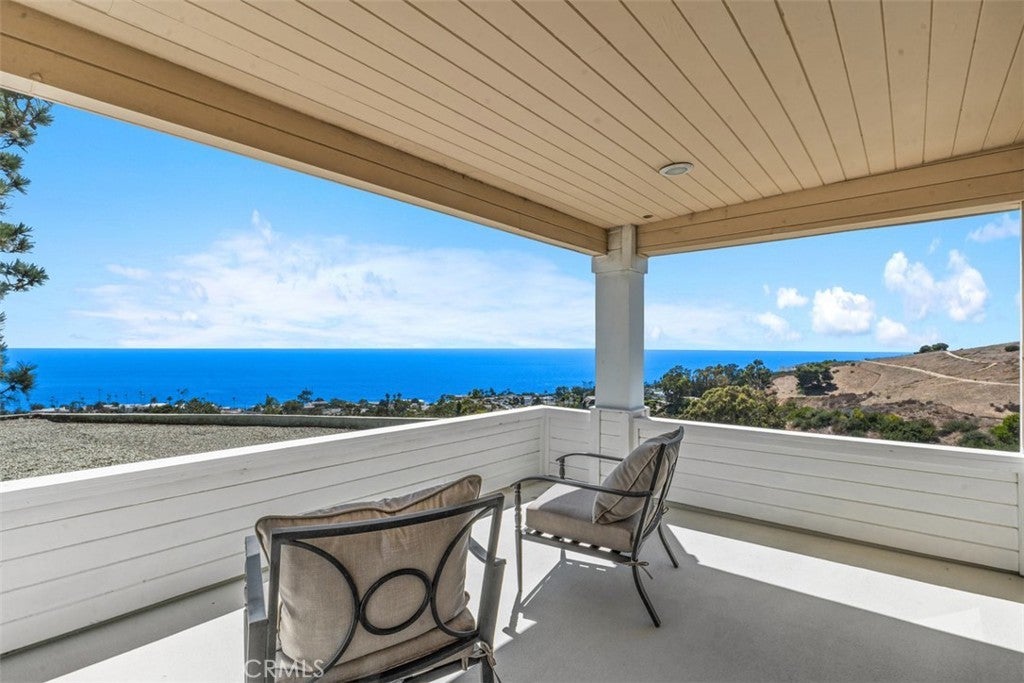 Perched within the gated enclave of Allview Terrace, this rare offering captures the very best of Laguna Beach living — sweeping ocean, coastline, and hillside views paired with privacy and seclusion, all while being just moments from downtown and the beach. A long, private driveway sets the stage for this special residence, creating a sense of arrival and exclusivity. Upon entry, you’re greeted by expansive living spaces oriented to take in 280° views stretching from the southern coastline and Hotel Laguna to Catalina Island, North Laguna, Shaw’s Cove, and the green hills of the Dartmoor Hiking Trail. Walls of Andersen windows and oversized sliding glass doors flood the interiors with light and seamlessly connect to spacious view decks — perfect for entertaining or simply enjoying Laguna’s famed sunsets beneath the silhouette of a Torrey pine. The main living area features wood flooring, a centerpiece fireplace with a custom mantle, and a wet bar, while the adjacent dining area and kitchen are designed to maximize the panoramic setting. A powder room and laundry are also on this level. The cozy library/den, complete with floor to ceiling built-in shelving, fireplace and skylight, offers a quiet retreat for reading or work. Two en-suite bedrooms are located on the main level — one with French windows and doors opening to balcony deck and ocean views, the other with a skylight and full bath. Upstairs, the primary suite provides a private sanctuary with vaulted ceilings, a viewing deck over North Laguna, walk-in closet, and a spa-like bath featuring dual sinks, a soaking Jacuzzi tub, walk-in shower, and private water closet. A bonus office/den area completes this upper retreat. Set on an oversized lot with mature coastal landscaping and adjacent to the historic Hortense Miller Garden, the property also offers a two-car garage and parking for up to six additional vehicles. 22691 Allview Terrace is a rare combination of dramatic views, privacy, and security — part of a gated enclave of only 32 homes with controlled-access access — all while being just minutes from downtown Laguna Beach, local beaches, shopping and restaurants.
