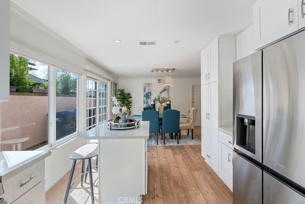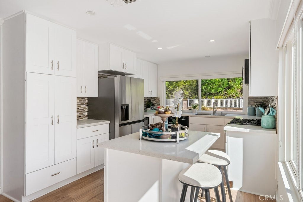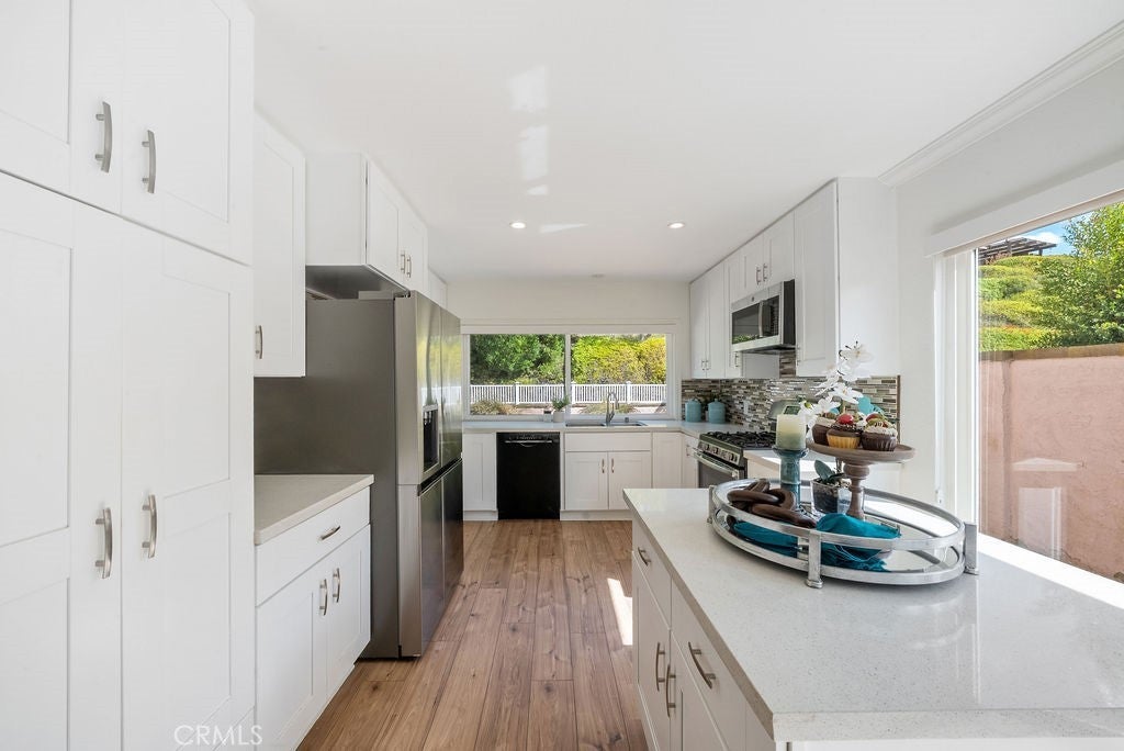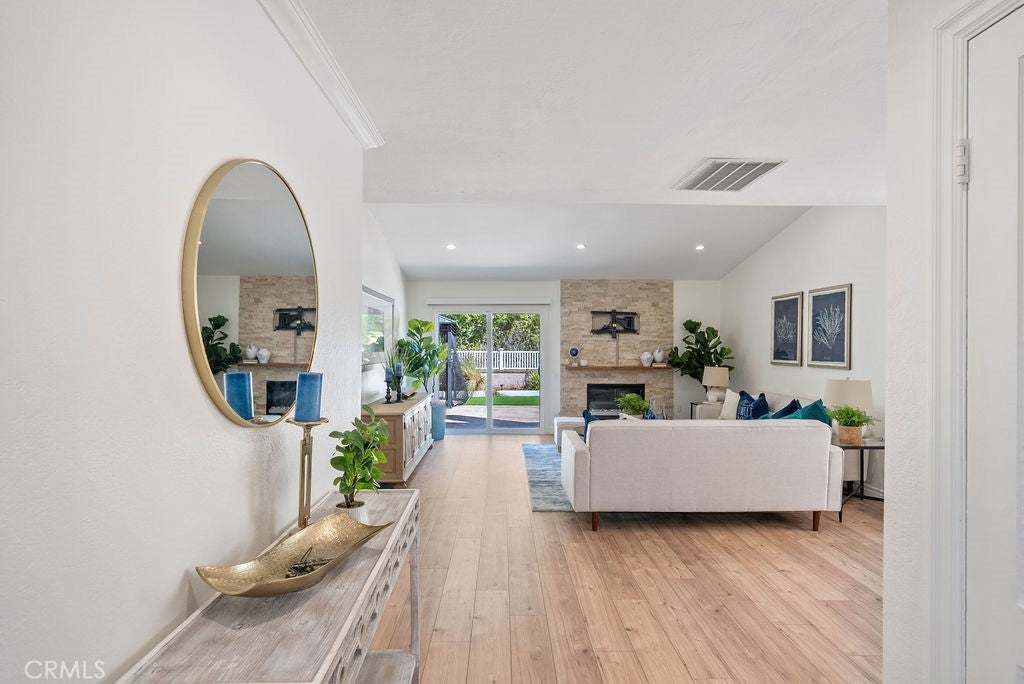 Discover your dream home in the heart of Mission Viejo! This beautifully remodeled, single-level residence sits on a large, private lot in the sought-after Castille neighborhood (New Castille, Central CA2). With 4 bedrooms and 2 bathrooms across 1,640 sq ft of elegant living space, this home blends comfort and style from top to bottom. Step inside to soaring ceilings, crown molding, recessed lighting and a whole-house fan. The spacious living room features a custom fireplace and flows seamlessly into a chef’s kitchen equipped with newer cabinetry, quartz countertops, stainless steel appliances, a stylish tile & cut-glass backsplash and an island perfect for casual dining or entertaining. Dual-pane windows and sliding doors open to reveal a backyard oasis boasting low-maintenance artificial turf, a custom fire pit, and ample room for outdoor entertaining. Other upgrades include vinyl plank flooring throughout, PEX re-piping, epoxy-floored 2-car attached garage with natural light, plus enhanced privacy and lush landscaping both front and rear. With its prime location, enjoy easy access to Lake Mission Viejo, local parks, shopping, and top-rated schools: Castille Elementary, Newhart Middle, and Capistrano Valley High. This gem represents refined single-story living in one of Mission Viejo’s most desirable settings.