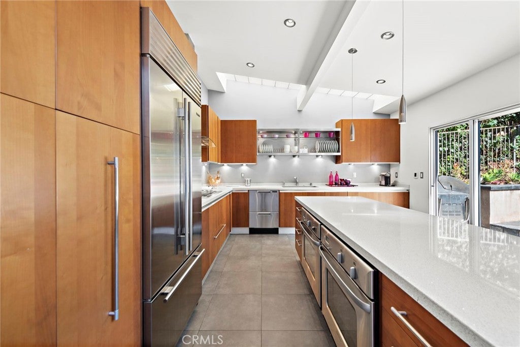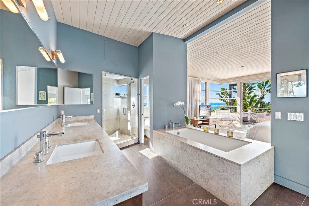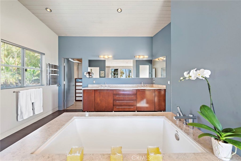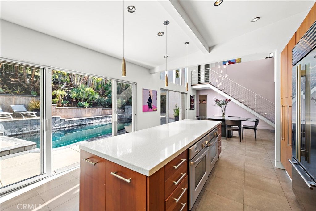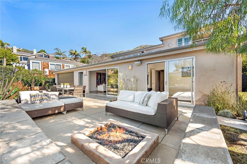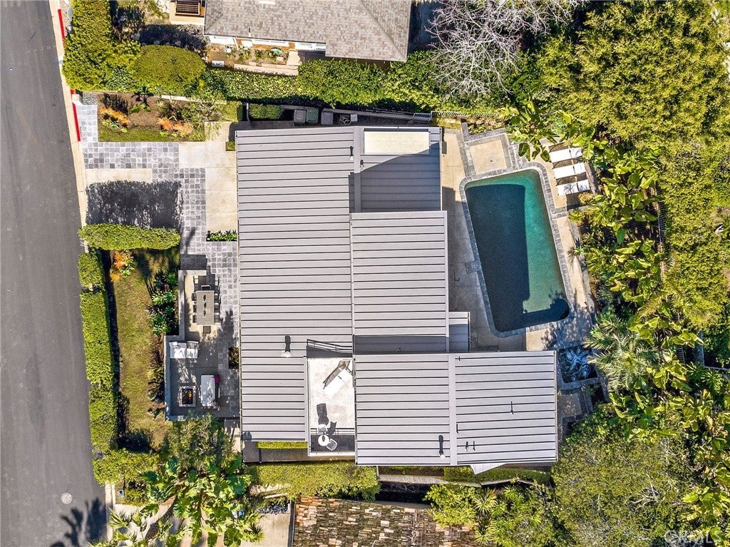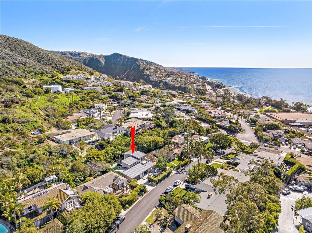 Beautiful contemporary home with ocean views located in one of Laguna's close to the beach neighborhoods. Perfectly situated on a quiet cul-de-sac Marilyn Dr, this gorgeous Tim Nicol's designed residence is an entertainers paradise. Primary bedroom suite situated on the second level with ocean views and a generous attached private deck to take the afternoon sunsets. 3 additional guest bedrooms (one currently being used as a combo media/bedroom) are situated on the ground level offering easy access to the front and back outdoor living areas. Expansive open chefs kitchen, dining and living room are surrounded by walls of glass doors creating seamless transition between nature and dwelling space. Lush tropical foliage surrounds ultra private back yard, large salt water pool and spa, and multiple lounge areas. Private front yard outdoor living space with built in fire pit, dining area. Easy access in minutes to Montage Resort and Spa, and Laguna's finest most sought after restaurants and beaches. A place of peace and tranquility to come live the dream in beautiful Laguna Beach.