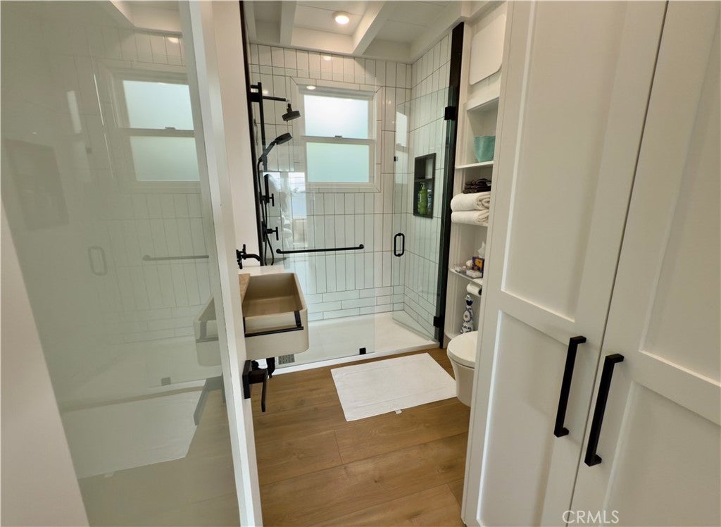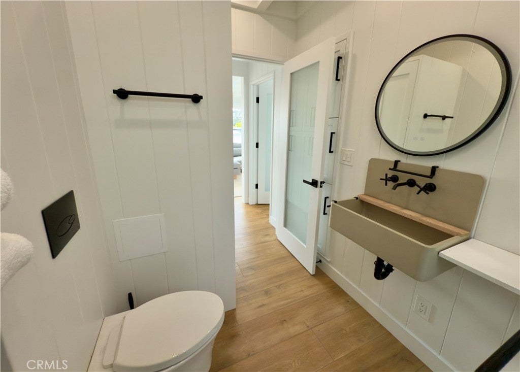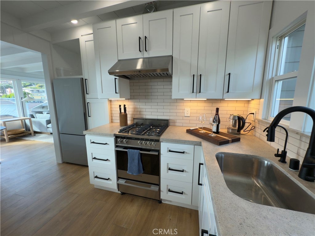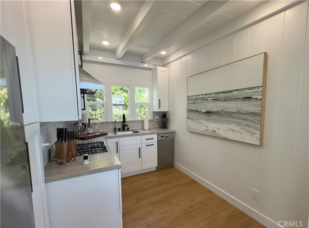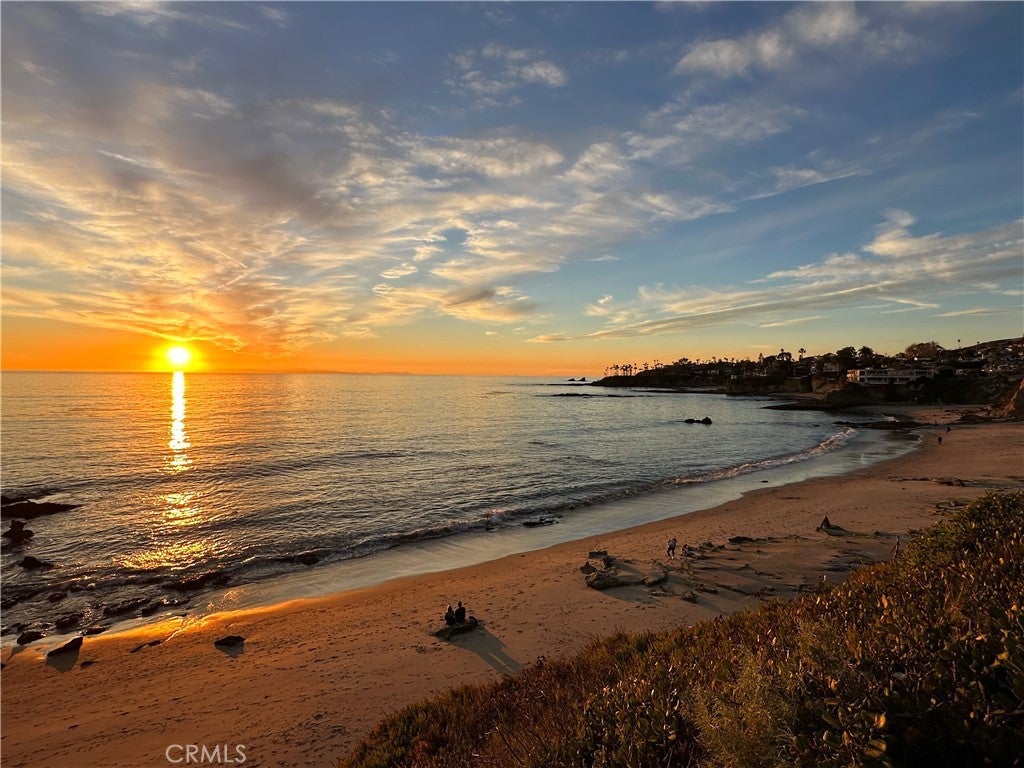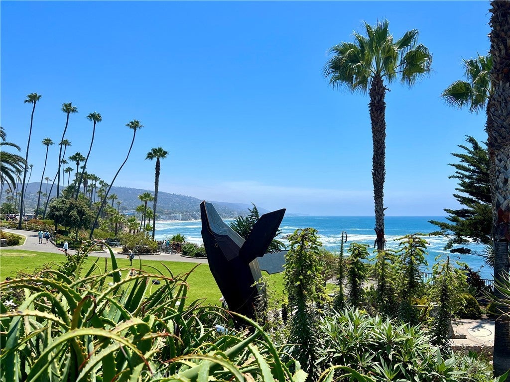 Brand new remodeled Cottage/Back House with panoramic Ocean, Catalina, and City Light views in North Laguna, just above Boat Canyon. This charmer is turn-key, was taken down to the studs and rebuilt with all high-end materials, and is just 2 blocks from the beach (Divers Cove, Heisler Park, and Fisherman's Cove). Enter from the back (off alleyway or along private path along East side of 252 Grandview to back) to an open deck surrounded by lemon trees. A wall of windows in the Living Room offers sweeping Ocean Views. High-beamed ceilings and new wood floors create a bright, beachy chic escape with tasteful decor and a large flat-screen TV. The remodeled kitchen has top-of-the-line appliances and is completely equipped with dishware, cookware, coffee machine, etc. for a comfortable stay. Full-sized stackable laundry in Hallway closet, new bathroom with step-in shower and a primary bedroom with a King-sized bed, flat-screen TV and walk-in closet. A/C and Instant Hot Water Heater. There is an outdoor shower for washing off the sand after a relaxing day at the beach. Restaurants and shopping are just steps away at Boat Canyon (Pavillions, ReUnion Kitchen, Grazie Pizza, Jan's Health Bar, Asada Tacos, and Black Dot Coffee) along with Gallery Row and all Village shops. Inquire about availability.