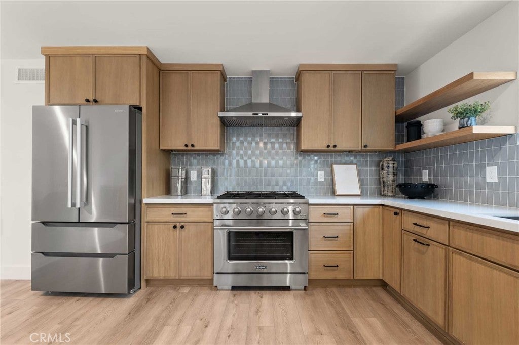 Stunning Multi-Level Home with Designer Touches and Private Outdoor Retreats Welcome to this beautifully updated multi-level residence, where modern upgrades meet timeless charm. Featuring new HVAC, new gas water heater, and new appliances, this home is move-in ready with comfort and style in every corner. Enjoy serene privacy and shade from mature trees and lush hedges, while multiple outdoor spaces—including a bonus covered front balcony perfect for morning coffee—offer peaceful retreats. A custom spiral staircase connects the upper deck to the bottom patio, adding architectural flair and convenience. Inside, you'll find a spacious, light-filled layout with large windows spanning a two-story open living space, recessed lighting throughout, and elegant finishes like white oak cabinetry, quartz countertops, and LVP flooring. The chef’s kitchen boasts a wine fridge, bar area, and a generous kitchen and dining space ideal for entertaining. The bottom level features a luxurious primary en suite with a stone fireplace, walk-in closet, and direct access to the backyard and porch. The second story hosts the main living, dining, and kitchen areas, along with a balcony/porch and the spiral staircase leading down. On the third story, you'll find two additional bedrooms, an enclosed laundry roomfor side-by-side washer/dryer, and a private front patio. Located in the vibrant Sawtelle neighborhood, this home offers easy access to exceptional dining and shopping in West LA, Brentwood, and Santa Monica. Quick freeway access to the 10 and 405 and minutes from LA’s beach communities. This property is a rare opportunity to own a beautifully updated home in one of LA’s most desirable neighborhoods. Whether you're relaxing by the fireplace, enjoying the shaded privacy of mature trees and hedges, or entertaining guests on one of the many patios, this home offers the perfect Westside lifestyle.