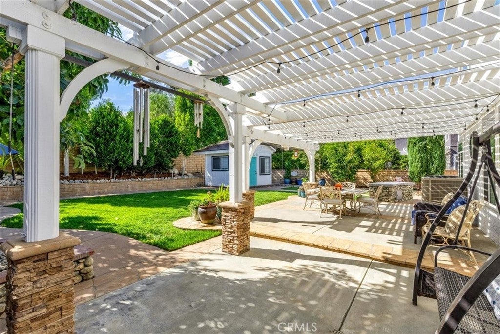 Charming Two-Story with Impeccable Curb Appeal & Outdoor Living Looking for curb appeal and pride of ownership? Look no further—this home has been loved for years, and it shows. A brick-paver driveway and entry welcome you to a freshly painted two-story exterior framed by manicured landscaping and colorful planters. The rear yard is an entertainer’s dream, with lush green grass, mature privacy trees, and eight producing fruit trees—two avocado, one lemon, two kumquat, one orange, one blueberry, and one pomegranate. Brick and stone planters, colored concrete, multiple seating areas, market lights, and a spacious wood patio create the perfect backdrop for gatherings or quiet evenings. A high-quality detached structure adds even more versatility—ideal as a workshop, art studio, music room, or an oversized playhouse for the kids. Inside, elegant travertine floors and backsplash, recessed lighting, wood blinds, and plantation shutters showcase timeless style. Each bathroom has been beautifully remodeled to match the home’s quality and charm. Convenience continues with a separate laundry room featuring a utility sink and paneled interior doors throughout. The location completes the picture. Country Springs Elementary—one of the area’s top-rated schools—is just moments away. Enjoy a short walk to English Springs Park, offering over eight acres of playgrounds, picnic tables, basketball and volleyball courts, and restrooms. Nearby trails include the Eucalyptus Trail, McCoy Trail, and the scenic Community Trail. For even bigger adventures, Chino Hills State Park awaits with 14,000 acres of grassy rolling hills and more than 90 miles of hiking, mountain-biking, and horseback-riding trails. This beautifully maintained property blends thoughtful upgrades with a premier lifestyle—ready for you to move in and enjoy today.