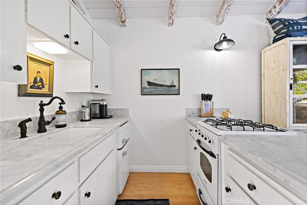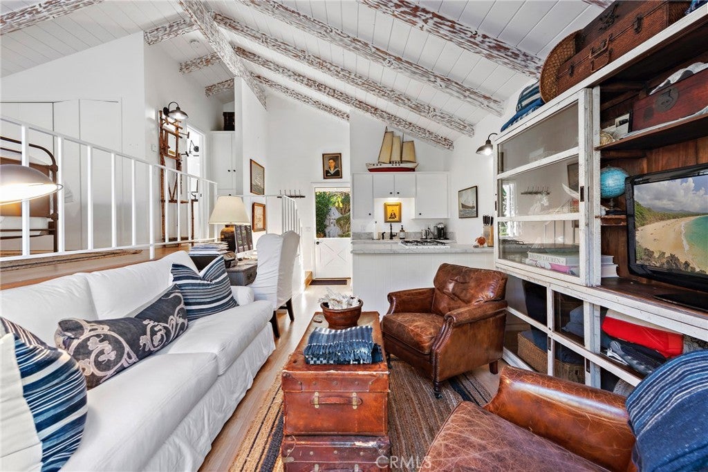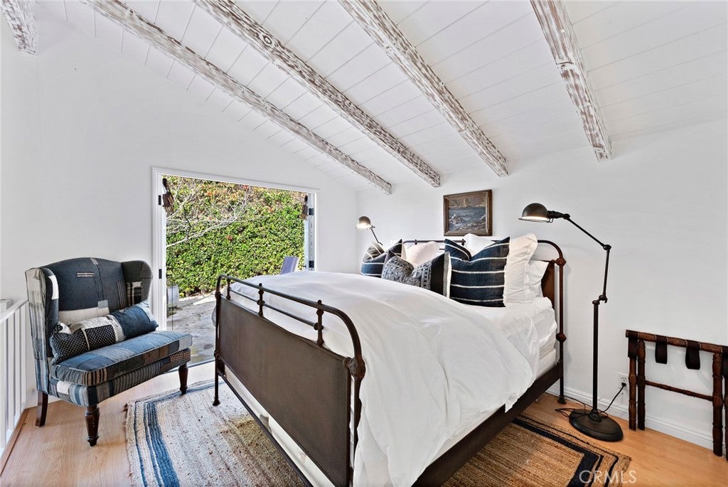Located on a private street in South Laguna just a short stroll from the sand, this fully furnished and beautifully updated unit offers the perfect coastal retreat. The interior features open-beamed ceilings, laminate flooring, and a stylish kitchen with a gas stove that flows seamlessly into the living room. A full bathroom with bathtub adds convenience, while the loft bedroom overlooks the living space and includes a plush king-sized bed and generous closet storage. Outside, a private patio invites alfresco dining with serene ocean views, complemented by apple and lemon trees. Additional highlights include shared laundry facilities and one dedicated parking space directly in front of the home.