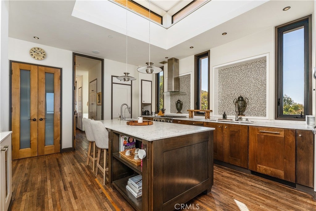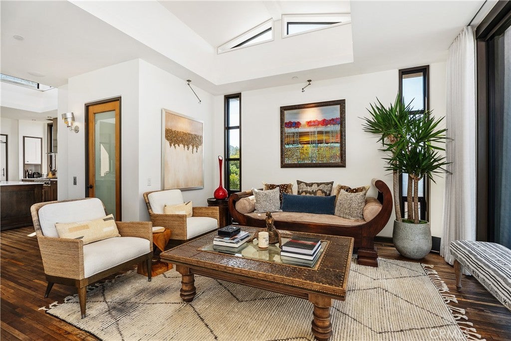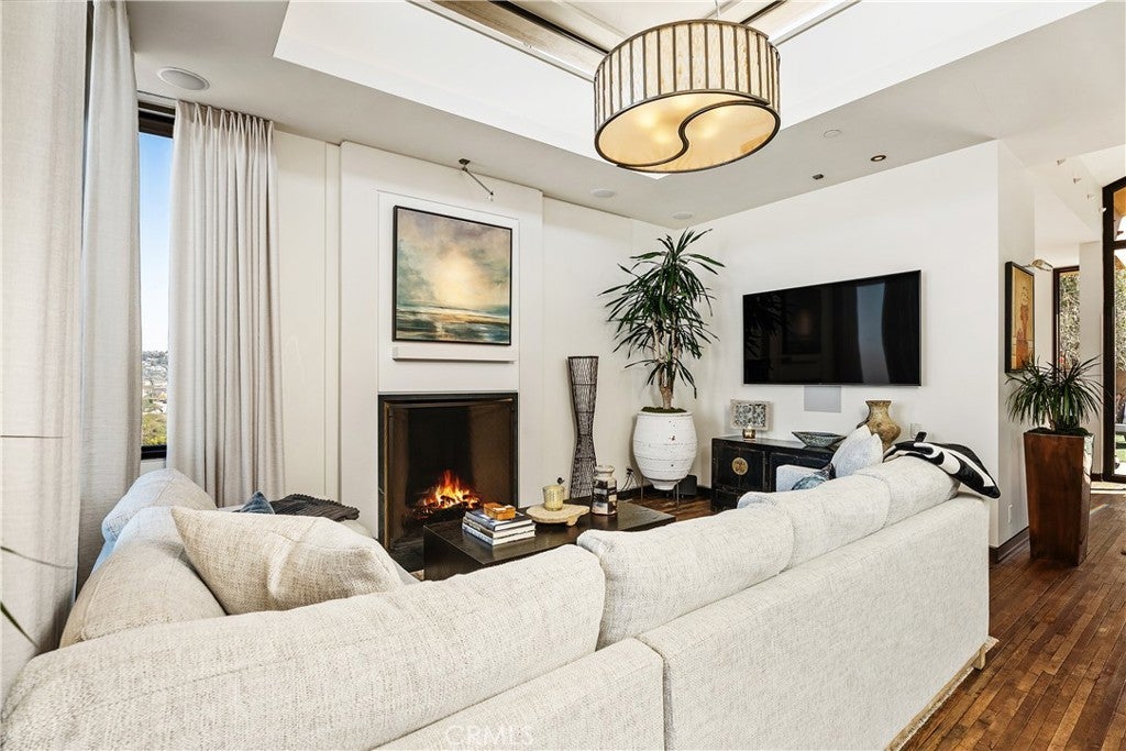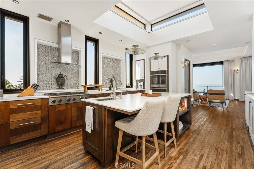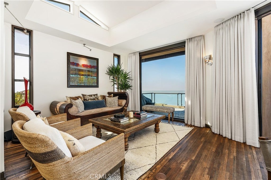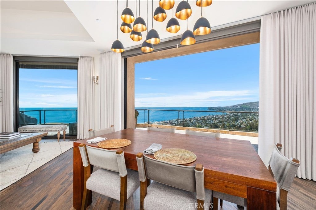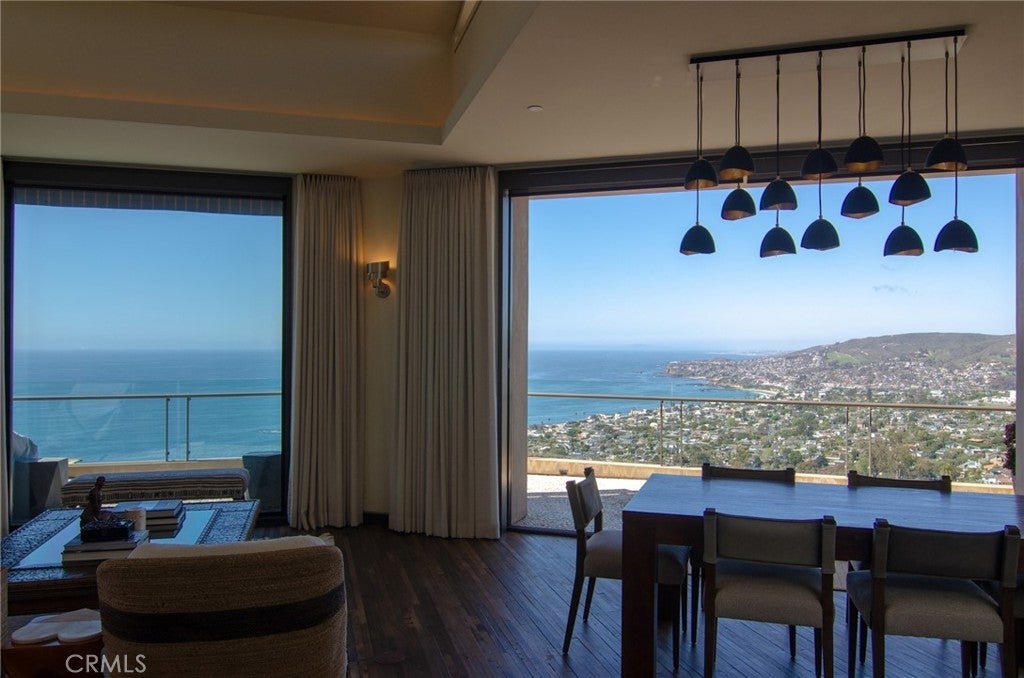 Dramatic Ocean View Architectural Masterpiece in Laguna Beach Perched in one of Laguna Beach’s most breathtaking settings, this four-bedroom, three-and-a-half-bath architecturally rich residence offers endless Pacific Ocean views, from the shimmering waters by day to the dazzling coastal lights by night. Designed to maximize the panoramic scenery, retractable glass doors seamlessly merge indoor and outdoor living, inviting in the ocean breeze and framing the stunning vistas. Spanning 4,951 square feet on a 6,500 square foot lot, this custom contemporary masterpiece is a sanctuary of style and sophistication. The open living spaces flow effortlessly to a spacious ocean-view terrace and a rare Laguna Hillside Garden, where outdoor seating, lush lawns, mature olive trees, and a vibrant flower garden create a serene retreat. The chef-inspired kitchen is designed for function and beauty, offering top-tier appliances and stunning ocean views. A separate dining area provides a picturesque setting with views of the coastline and garden. The living space is designed for grand entertaining, enhanced by soaring ceilings, architectural art lighting, and generous gallery-like wall space. A sculptural interior staircase and 100-year-old patinated maple flooring add to the home’s distinctive character. The temperature-controlled wine room, capable of storing up to 700 bottles, provides ample space for wine enthusiasts. The luxurious master suite features a private ocean-view balcony, spa-like bath, and his-and-her dressing areas. Two additional en suite guest rooms, both with ocean views, provide comfort and privacy. A convertible media room offers flexibility for additional living space. Additional highlights include: Elevator access to all levels Oversized garage with a private gym Whole-house audio and high-end finishes throughout Multiple ocean-view decks, including a private master suite terrace with sweeping white-water, coastline, Catalina Island, and city-light views, this exceptional residence is a true coastal retreat, offering the best of Laguna Beach living.