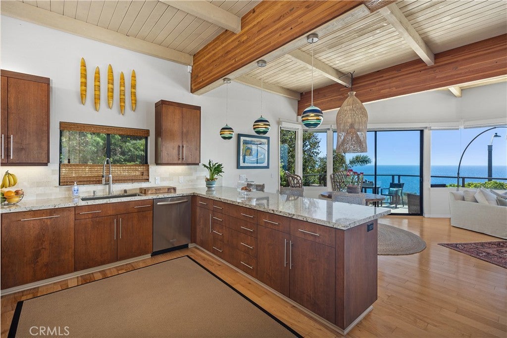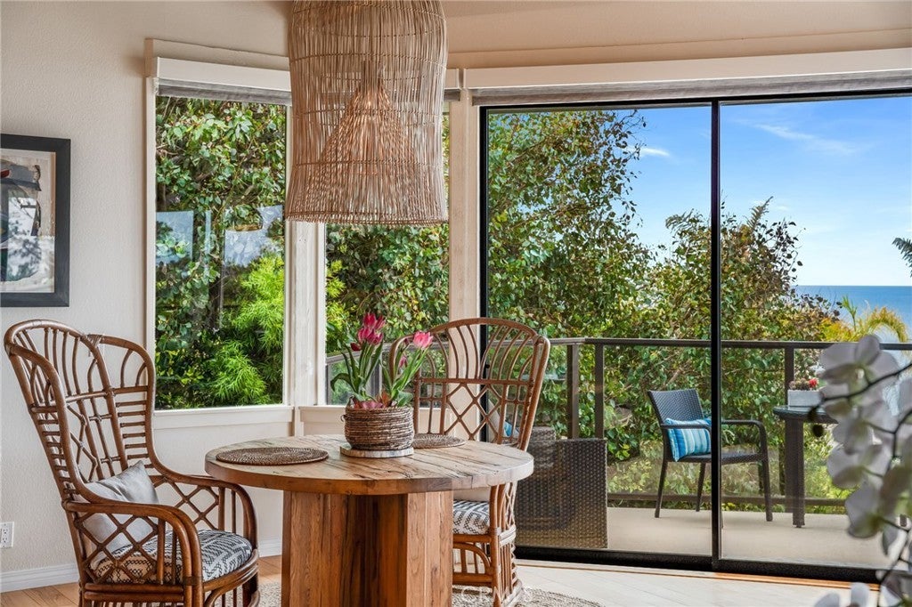 Located just one mile south of the renowned Montage Resort, 31588 Table Rock Drive offers an extremely rare and exceptional value on the ocean side of Coast Highway — boasting the lowest price per square foot for an active listing in this coveted area. This classic architectural home with approximately 4,100 square feet of living space is situated on a large, lush corner lot with convenient access to beautiful Secret Cove beach. Add in phenomenal coastline views as well as close-in whitewater views and a rare, immense rooftop patio terrace with vast, unobstructed 360-degree views. The oversized “living/great room” with high ceilings offers captivating 180-degree wrap-around ocean view, sitting and entertaining areas. The home's ocean view kitchen with its extensive countertop is designed for cooking and entertaining. This residence offers five bedrooms and four upgraded baths…along with inspiring and large private work-at-home studio offices. The generous primary bedroom suite offers an ocean view…as well as an additional ocean view terrace. An inviting family room centers on its distinctive rock fireplace, which pays homage to its Table Rock location. This home is situated on an exceptionally large lot and offers wonderful privacy and abundant outdoor living with beautiful private rear and side yards. The epitome of Laguna Beach living, steps to Table Rock and West Street beaches, and at low tide, easy access along the sand to the world-renowned Montage Resort. Please schedule your private tour to see this spectacular home at this amazing price.