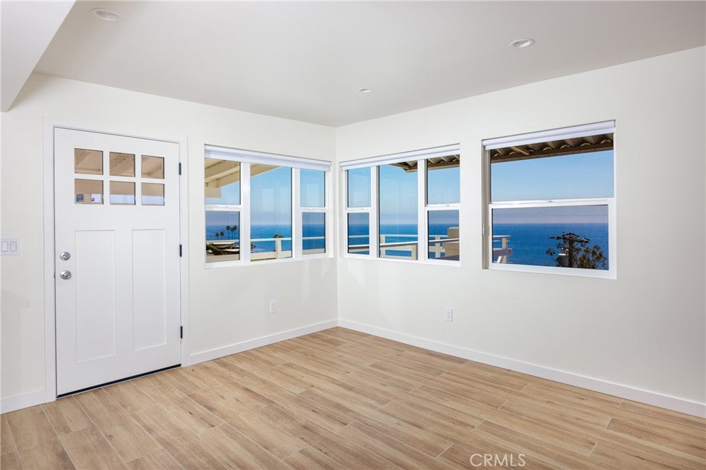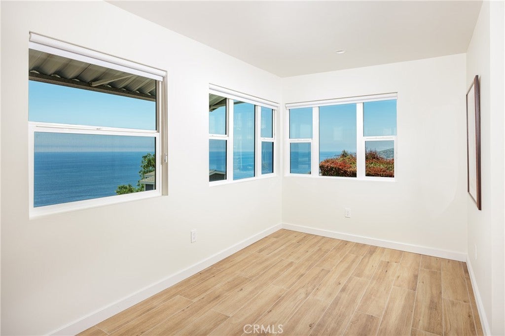 Views galore! Enjoy one of the best panoramic ocean views that Laguna has to offer! This unique, must-see property is nestled in a beautiful natural preserve up on the hill above the iconic Woods Cove clear water beaches and is very private. With stunning pano ocean views, you can see the coastline for miles, including Main Beach and beyond. Recently updated throughout, this pristine 1 bedroom, 1 bath home features fresh white paint, brand-new wood tile floors, a brand-new kitchen, and an all-new bathroom. The living room has large windows staring into the Pacific blue ocean and is a nice space to relax and soak in the view. The kitchen includes all-new countertops, a tiled backsplash, and is equipped with all-new stainless steel appliances. The bedroom features a spacious walk-in closet, and the all-new bathroom includes a gorgeous green tile shower. You'll also enjoy its ocean view deck for outdoor entertaining! The laundry room is shared with the downstairs tenant. This home is a short drive to Laguna's HIP district, including renowned beaches, restaurants, art galleries, shopping, and more. You're invited to enjoy the elevated lifestyle and welcoming community of Laguna Beach in this beautiful home. An additional fee for utilities, including water, trash, gas, will apply. Tenants are responsible for paying their own cable/internet expenses.