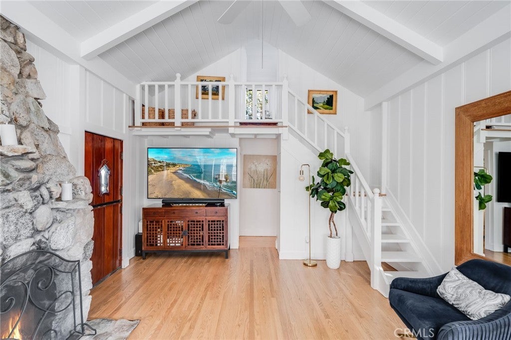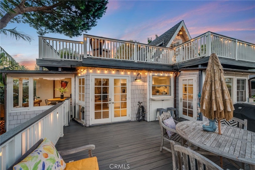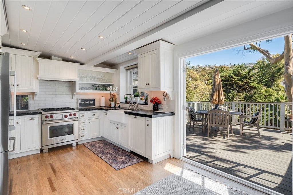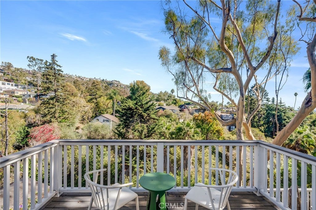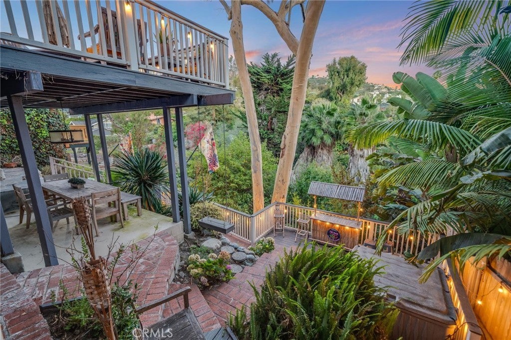 Bathed in natural light and rich with character, this perfectly-located storybook home blends classic craftsmanship with coastal charm. Hardwood floors, vaulted ceilings, and thoughtful design details create an inviting sense of place. This is a home that invites you to settle in and enjoy your day. Set on a generous lot, the property offers no less than four private decks, including a lower-level retreat with a spa - perfect for unwinding or entertaining. Every corner of the home feels designed to celebrate the Laguna lifestyle, from morning coffee in the sunshine to evening gatherings under the stars. A modern kitchen with high end appliances and beautifully updated baths complements the welcoming charm of the home. The location provides immense privacy, overlooking the beautiful lower ‘saddle’ of Bluebird Canyon providing little moments of joy wherever you look. Located just a few quiet blocks from Bluebird Park and some of Laguna’s most beloved local beaches, 559 Calliope is ready to welcome its next thoughtful steward.