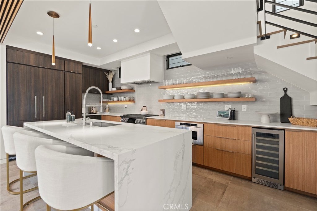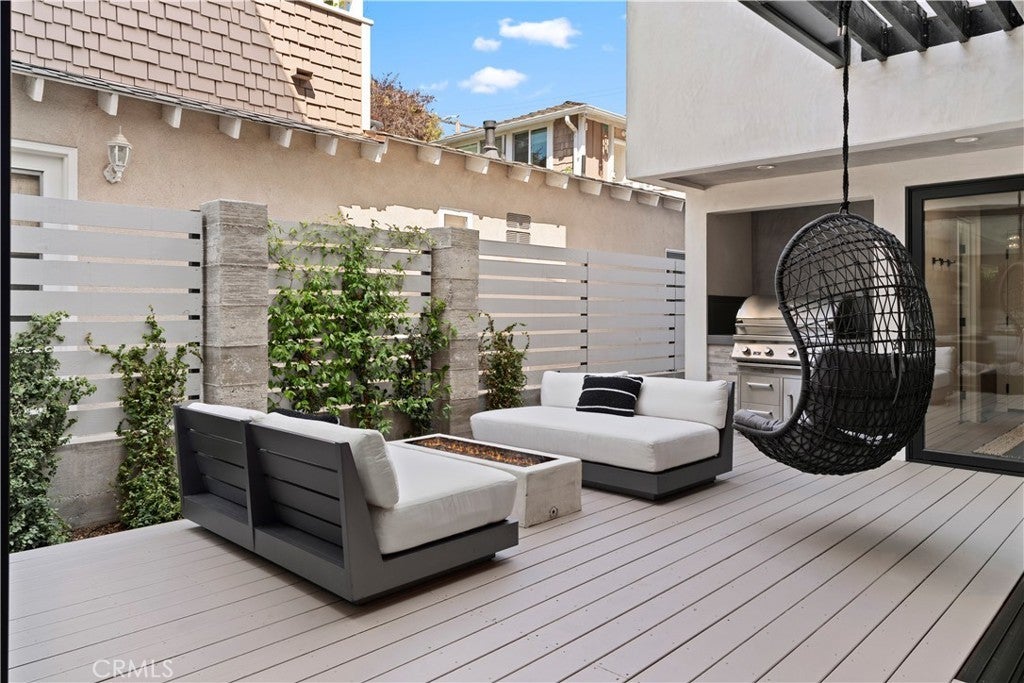 Available February-April 2026! This newly built stunning fully furnished soft contemporary home located just a short stroll from the shops, restaurants, and beautiful beaches of Corona Del Mar. This unique home features 3 bedrooms, 4 bathrooms and a rare office and bathroom on the first floor. The custom chef's kitchen seamlessly blends into the great room, which boasts La Cantina sliding doors that open onto multiple private outdoor lounge areas, each with its own fireplace, perfect for year-round al fresco dining. The property is furnished with Restoration Hardware pieces and equipped with top-of-the-line Dacor appliances, Bluetooth surround sound audio, porcelain tile and oak flooring, Jeld-Wen windows, a Lutron smart home system and many more premium amenities. Each bedroom includes an en suite bathroom with ample closet space and sizeable built-ins. The primary suite, located on the second floor, features a walk-in closet, a free-standing tub, and a walk-in shower. A secondary bedroom and bathroom are also on the second floor, while the third bedroom and bathroom are on the top level, offering easy access to the rooftop deck. This deck provides the perfect spot for entertaining guests while enjoying panoramic views of the village. With the best restaurants, shopping, and beaches just minutes from the front door, this property is a true gem.